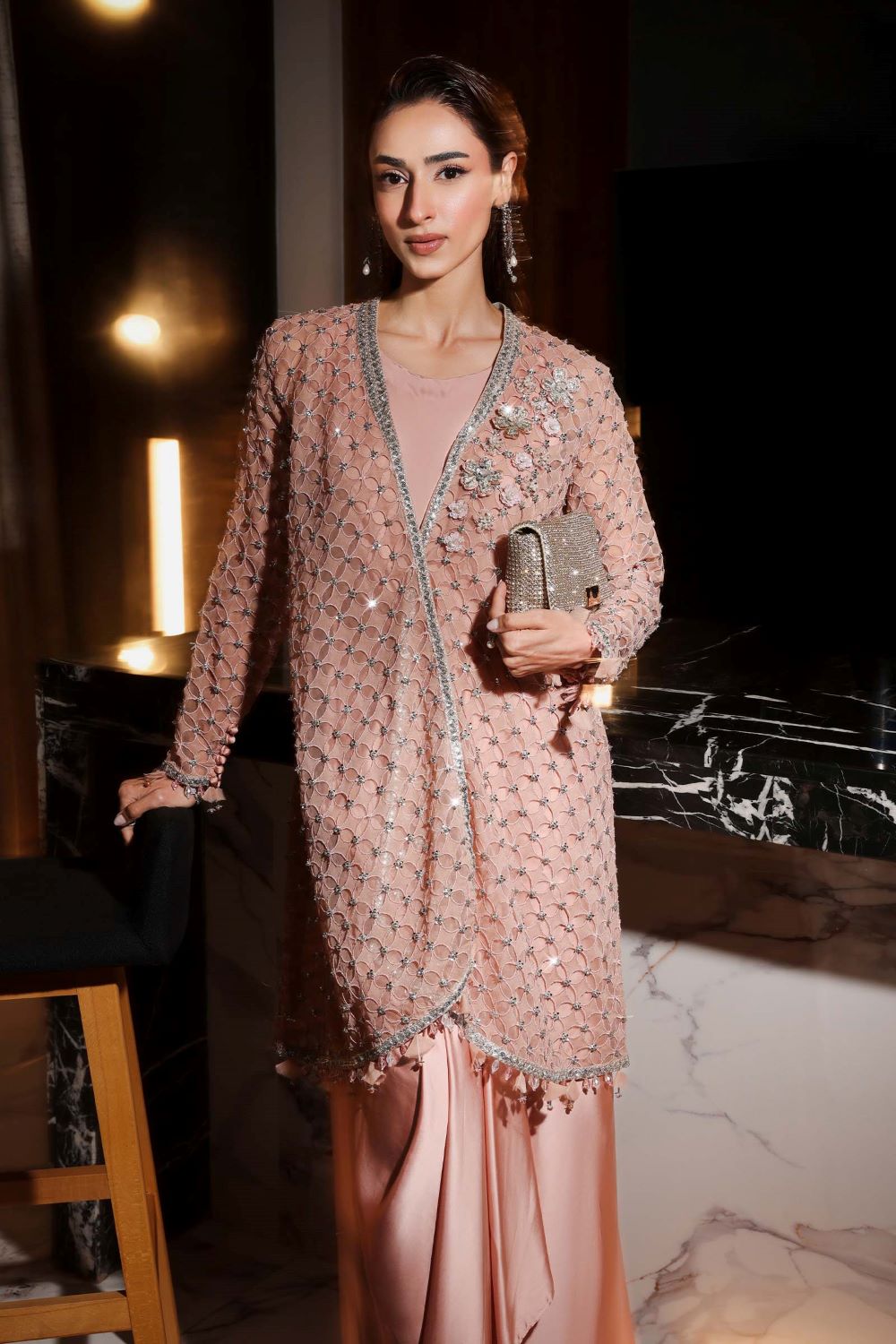 Embroidered Border On Front-Open Slit, Border & Sleeves