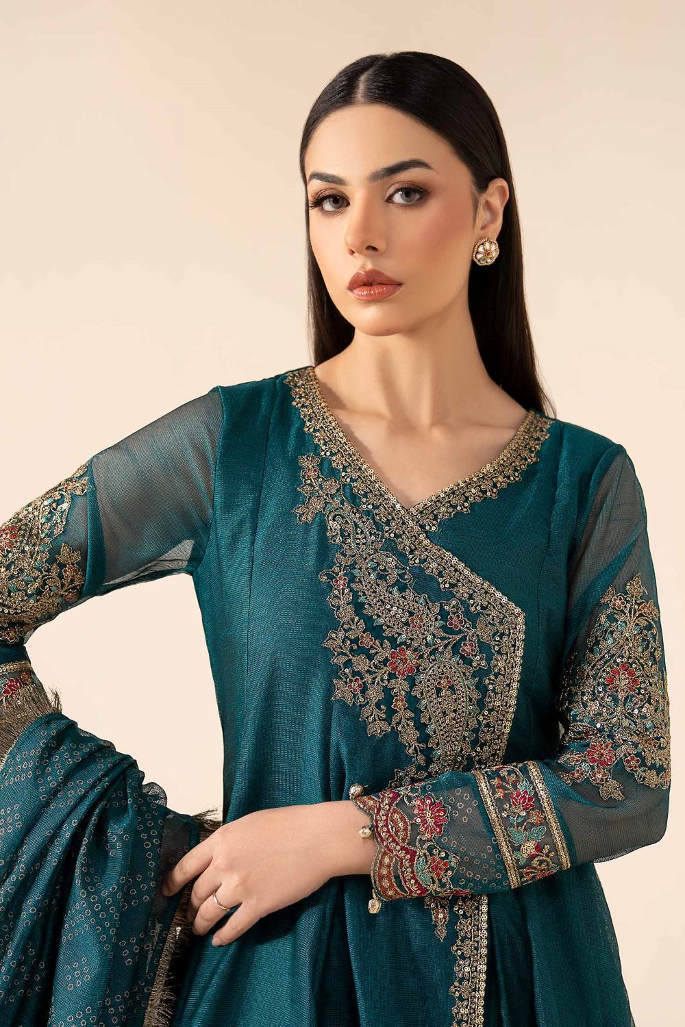 Work Details: Sequins, Tilla & Thread Embroidery With Gotta Balls Detailing