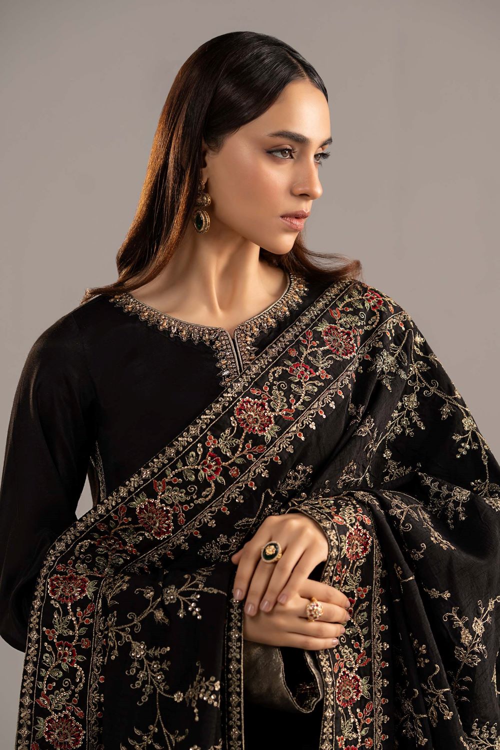 Maria.B | 3 Piece Embroidered Raw Silk Suit | SF-W24-20R1 | Ready to wear