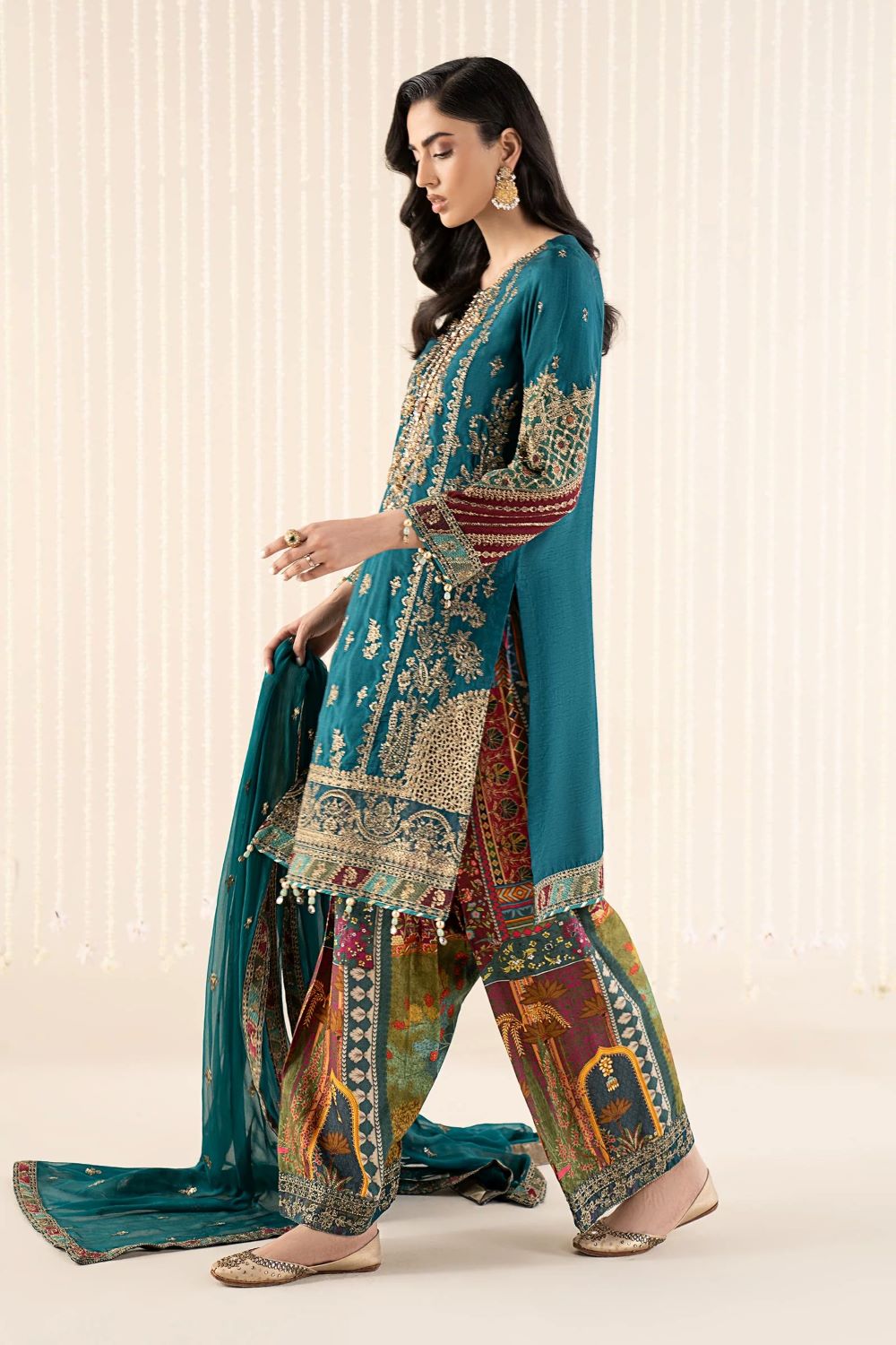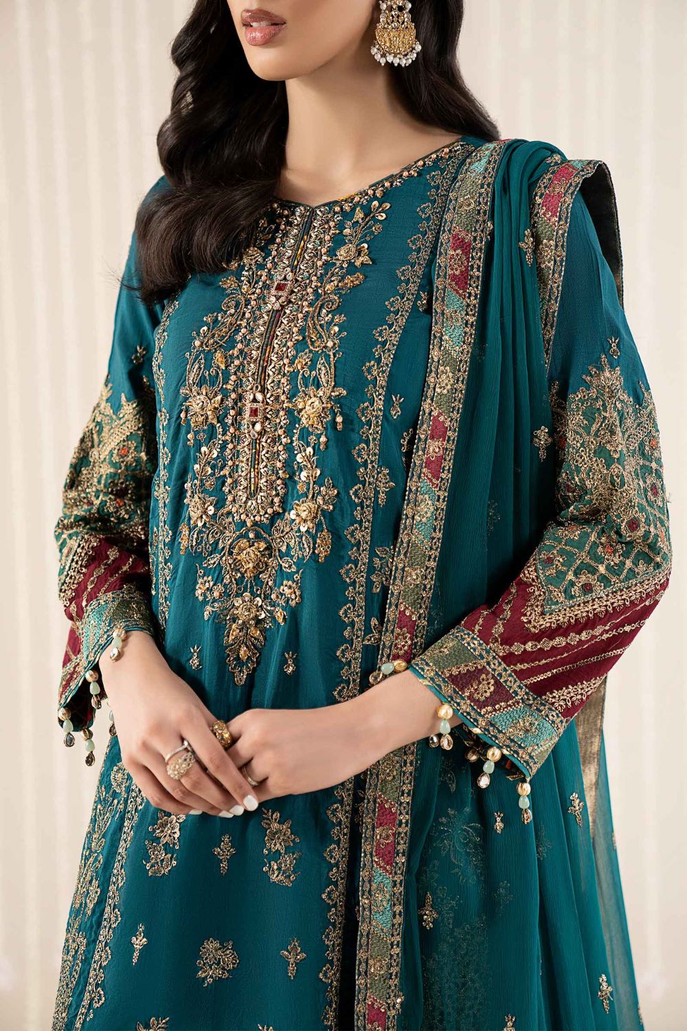 Embroidered Sleeves With Multi-Dyed Border & Gotta-Pearl Tassel Detailing