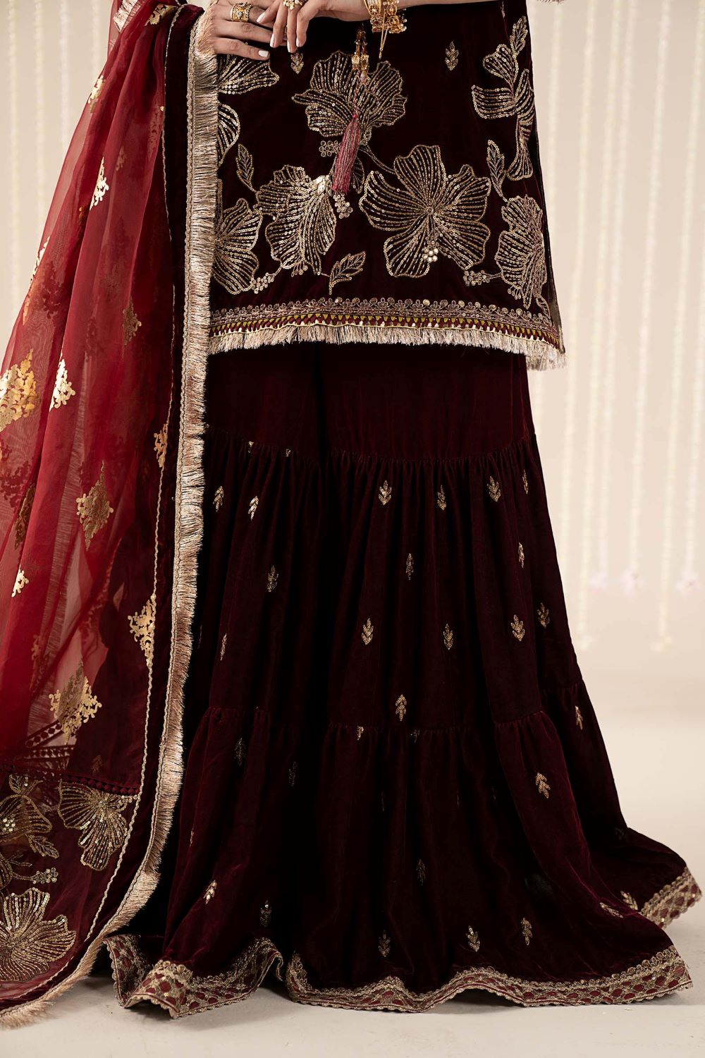 Four-Side Velvet Border With Kiran & Gotta Lace Detailing