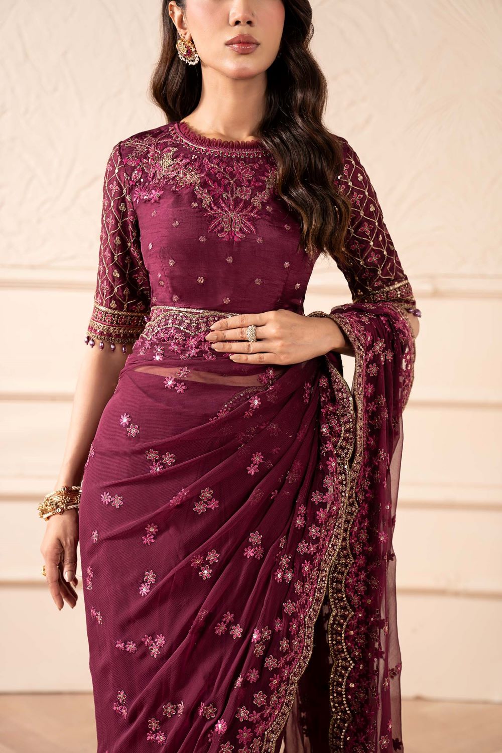 Maria.B | Embroidered Chiffon Saree | SF-W25-36 | Ready to wear