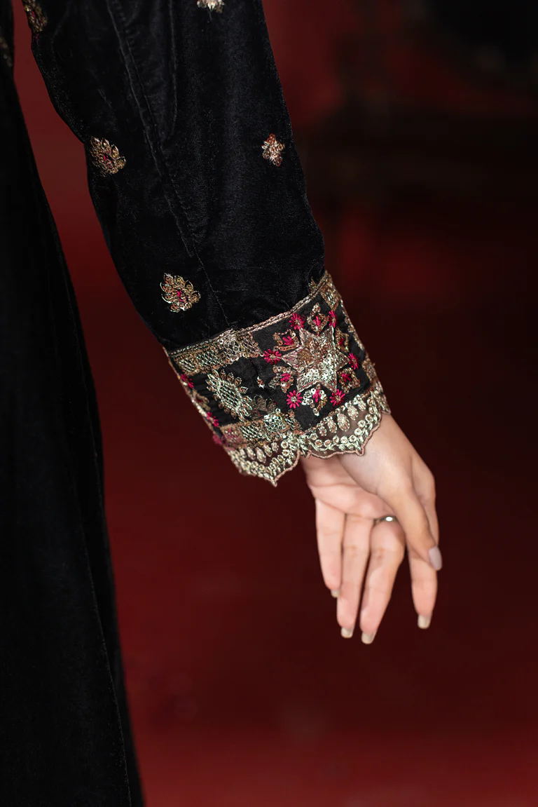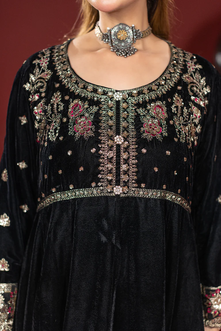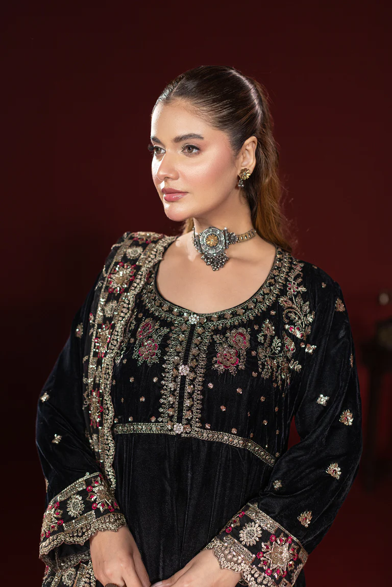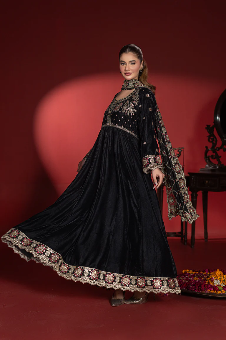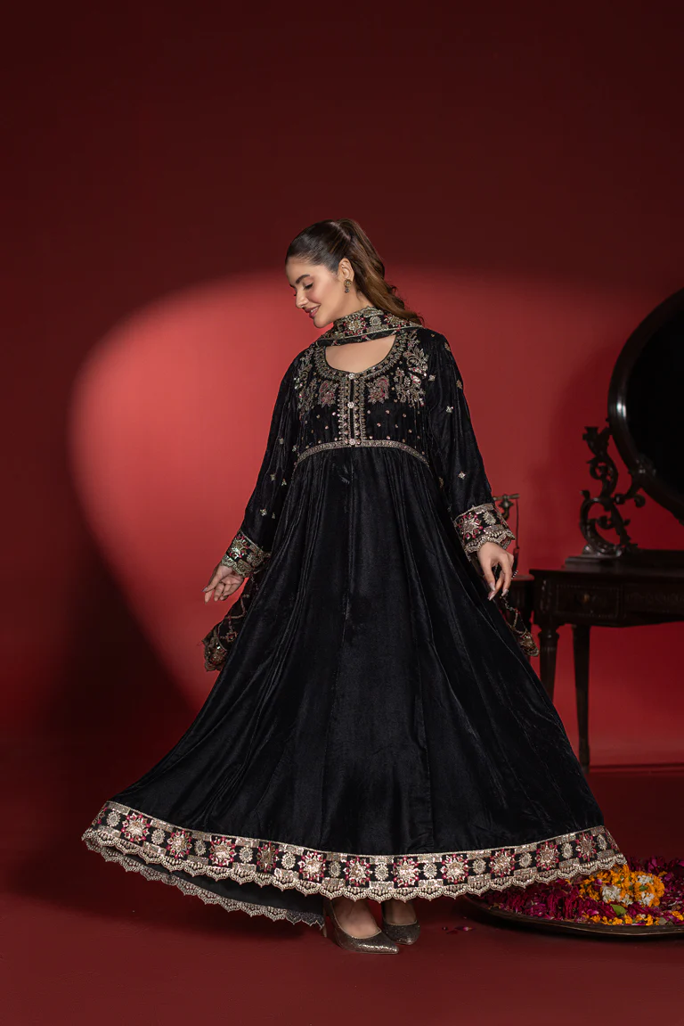 Abira’s | Hooriya- 3 Piece Embroidered Black Velvet Anarkali Set | Ready to wear