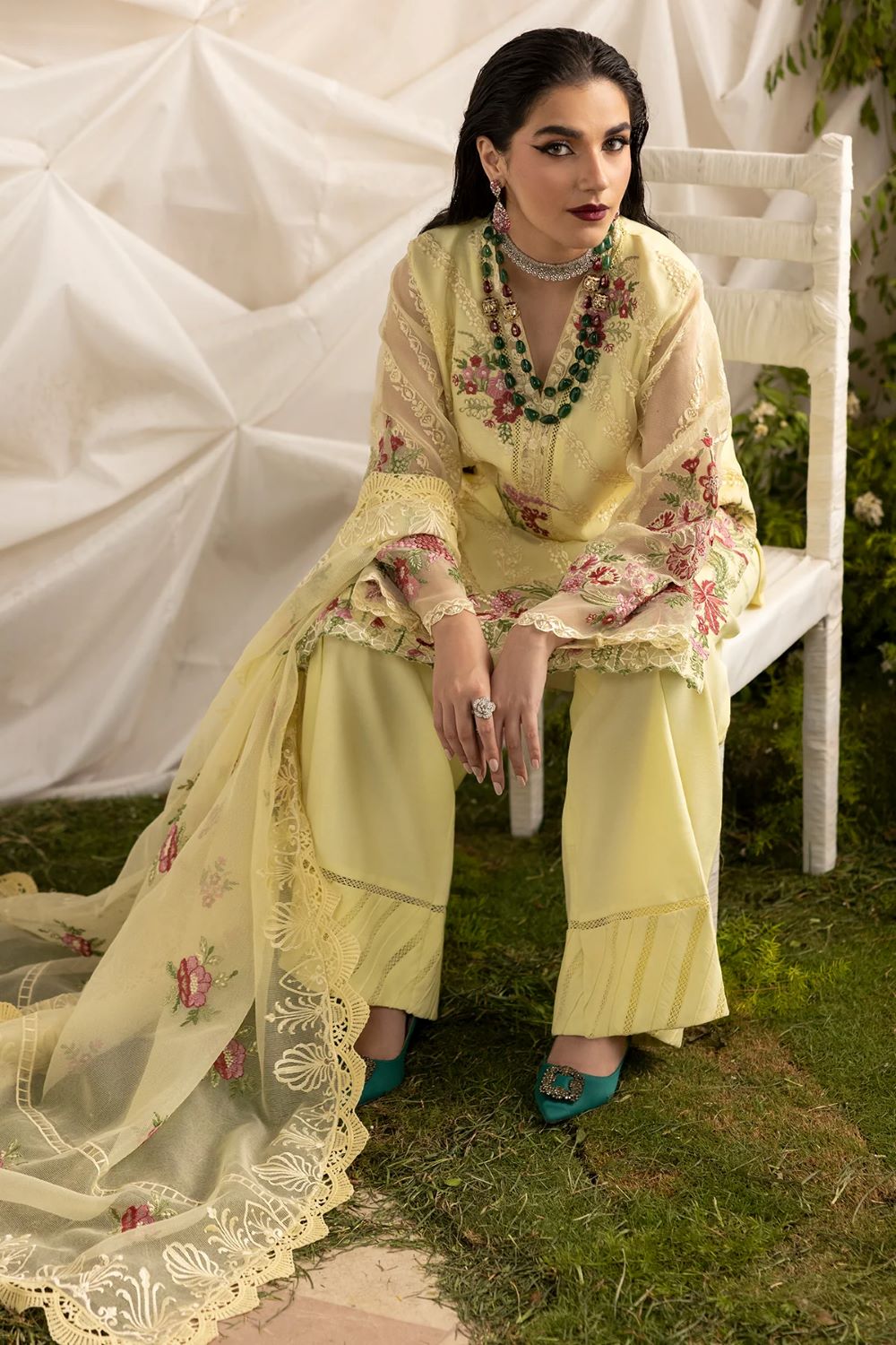 Charizma | 3-PC Lemon yellow Cotton Net suit | CMA-5-192 | Ready To Wear