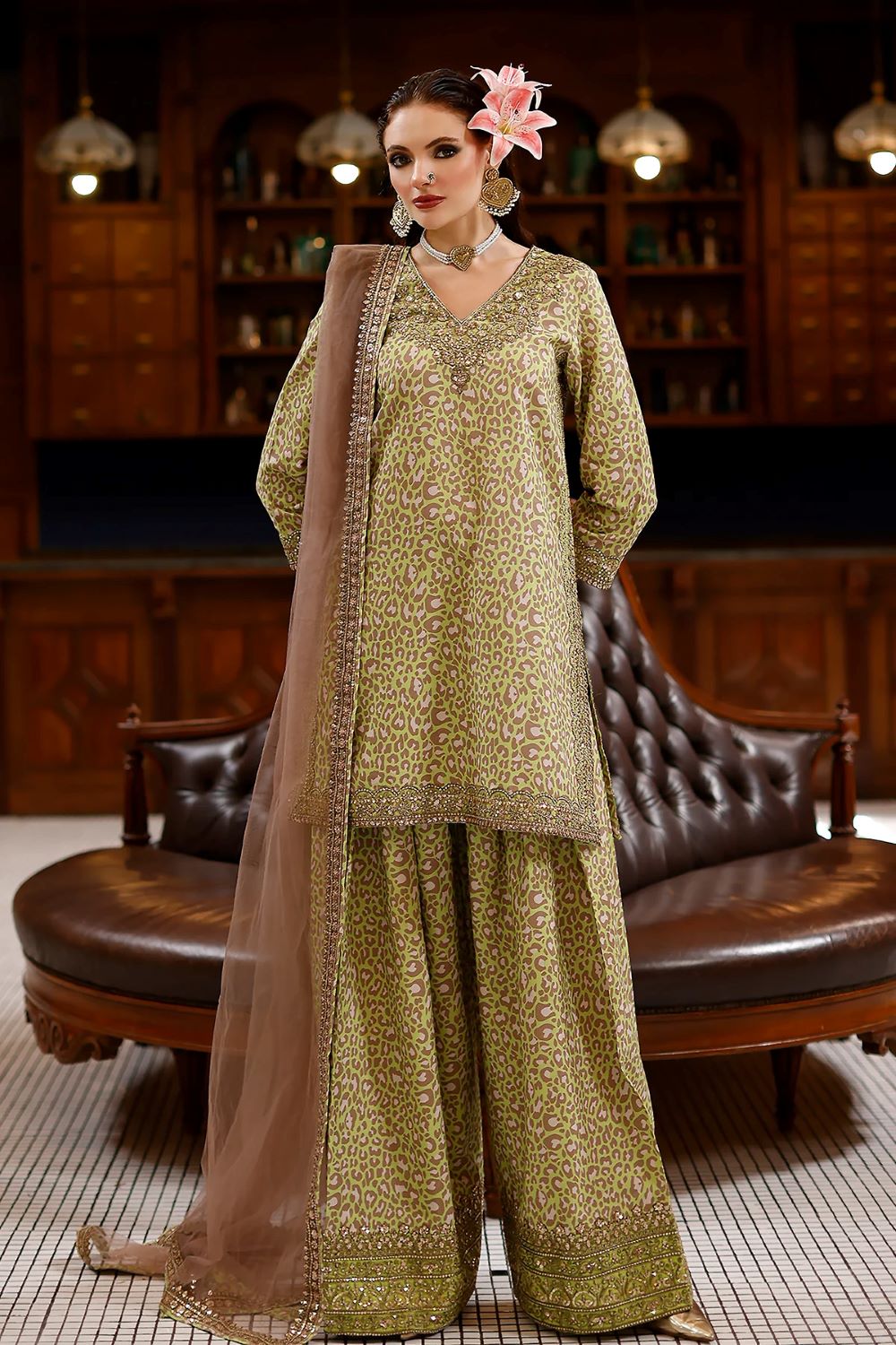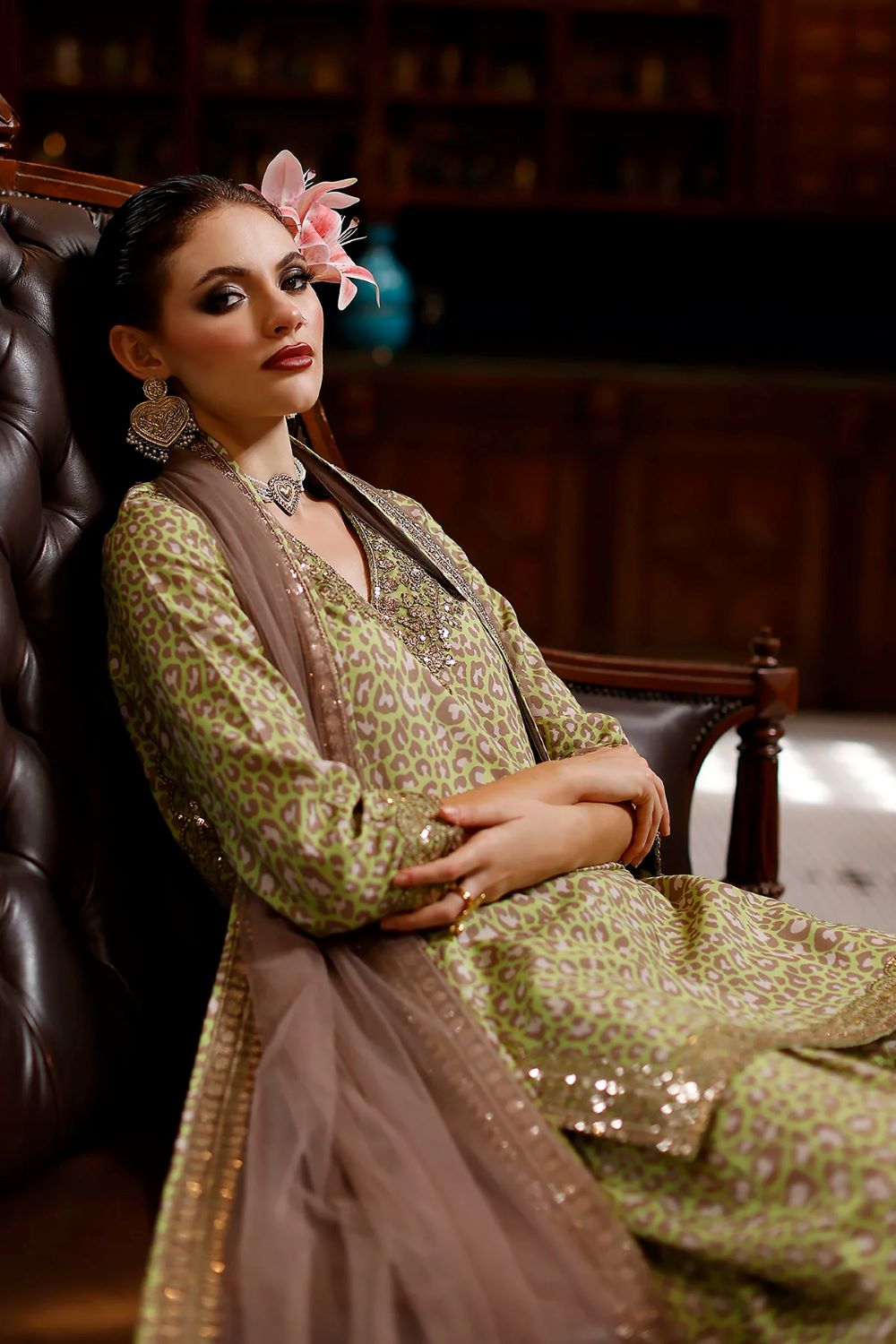 Charizma | Apple green leopard print suit | CMA-6-154 | Ready To Wear