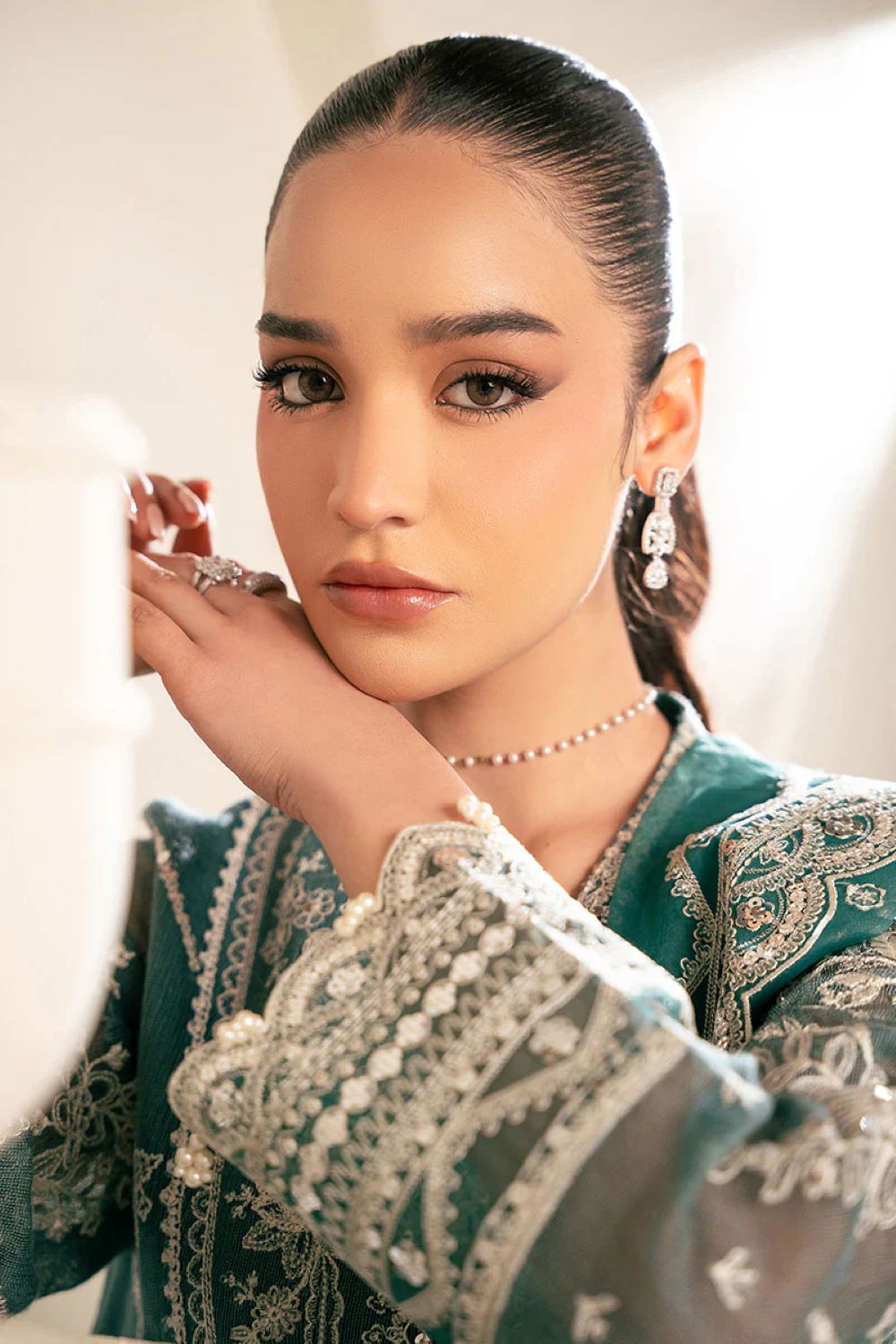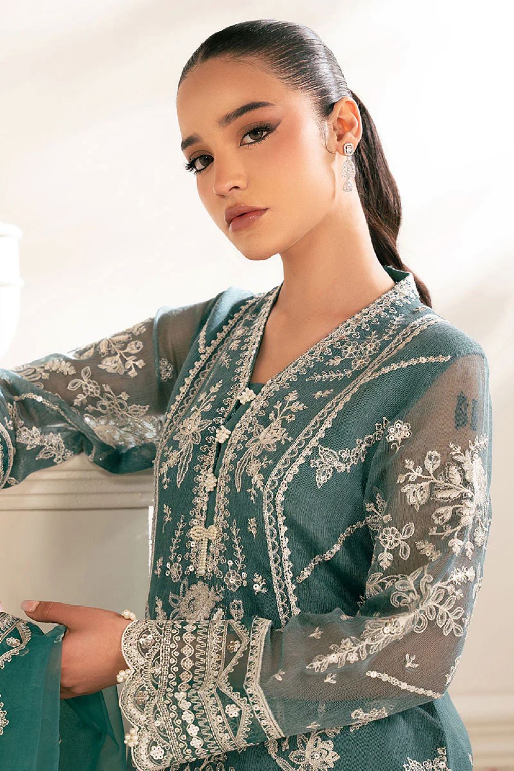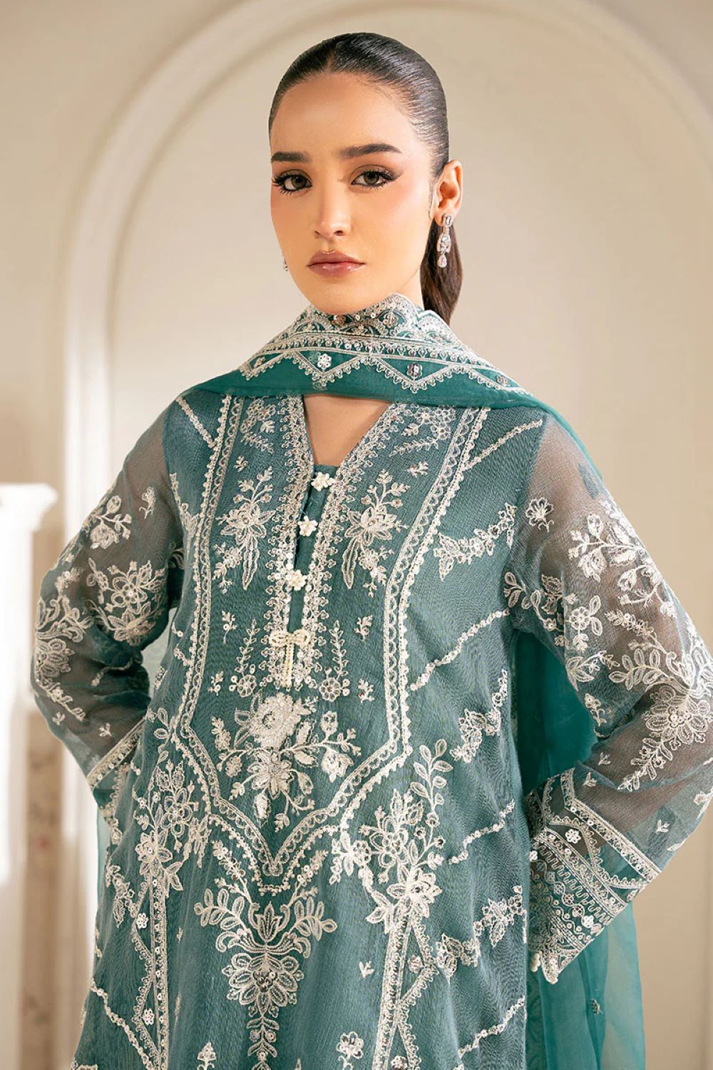 Fabric: NET Color: TEAL Work Details:EMBROIDERED