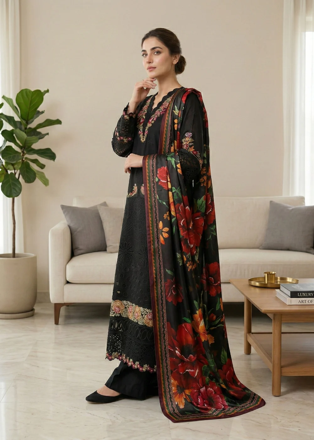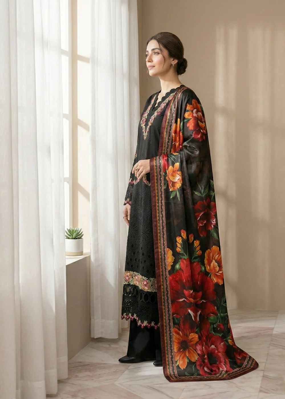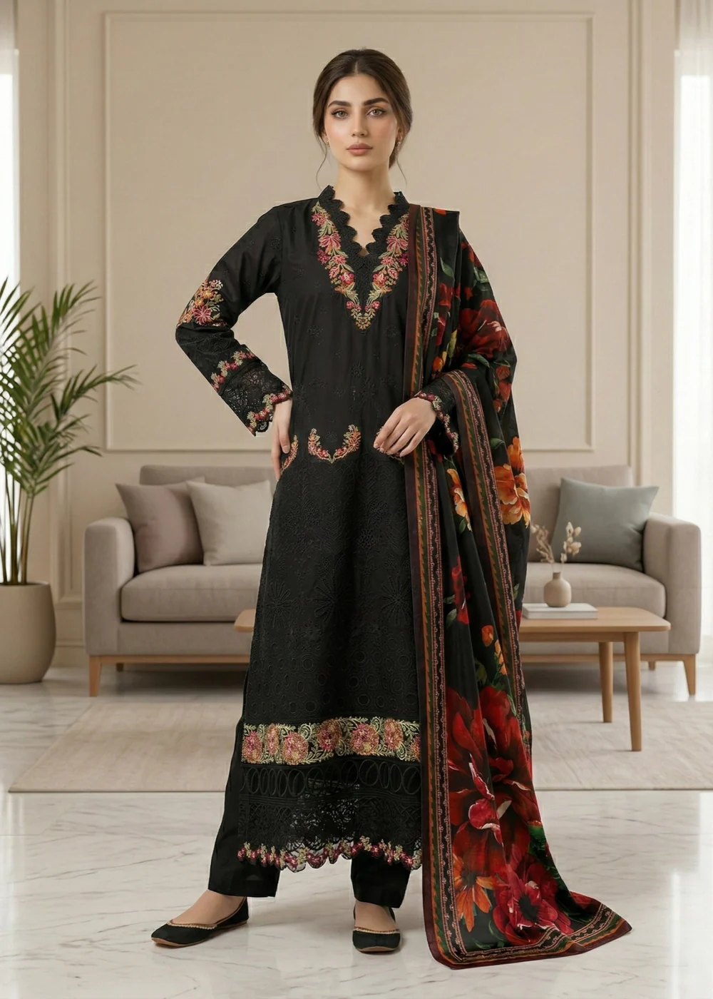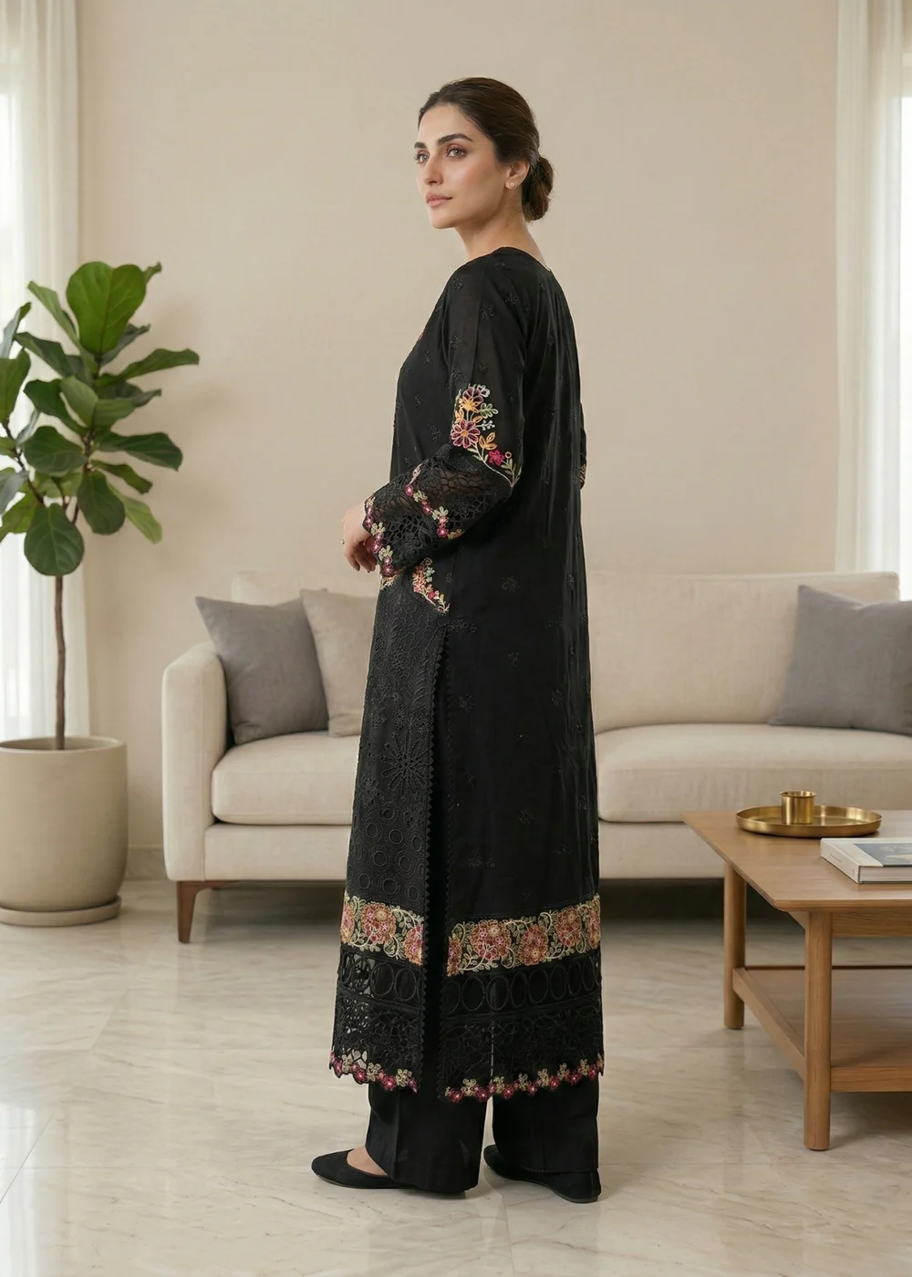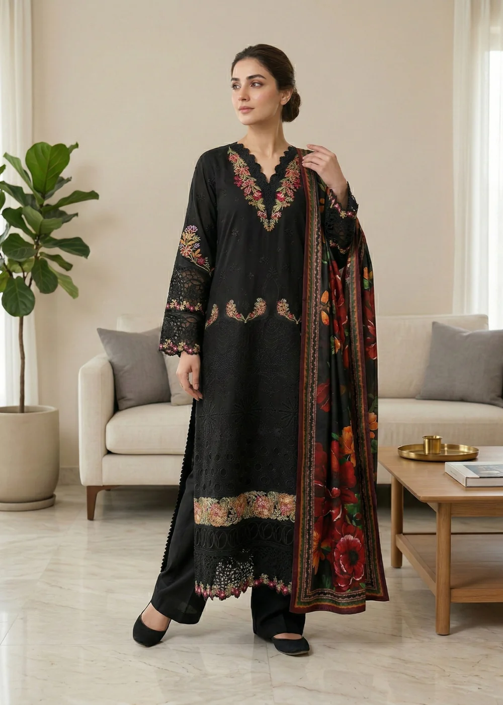 Diara Couture | LAWN – UN-108 – BLACK | Ready To Wear