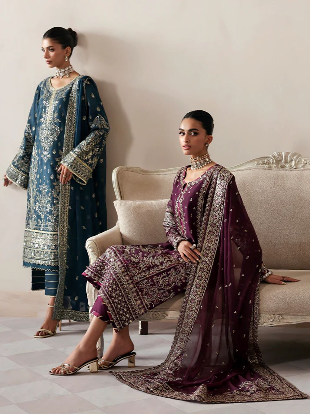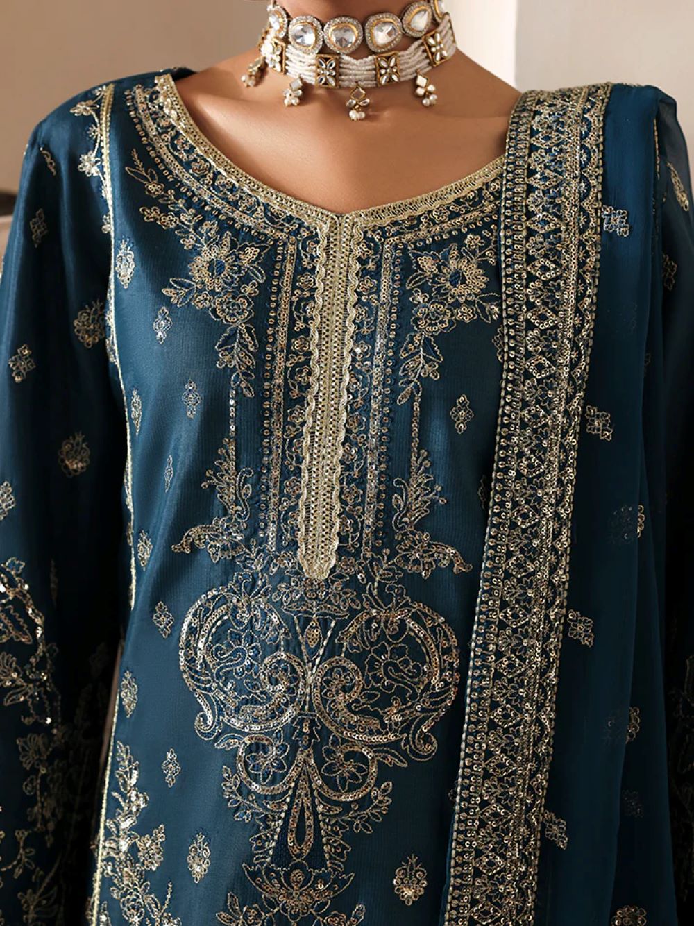 - Embroidered and sequined chiffon dupatta