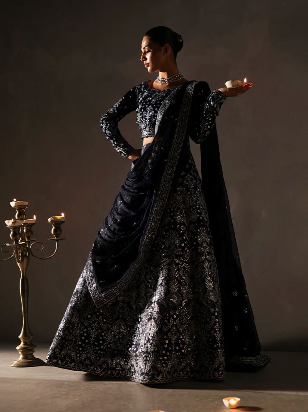• Embroidered and sequined velvet sleeves