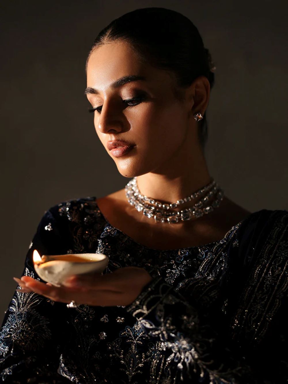 • Embroidered and sequined organza border for dupatta