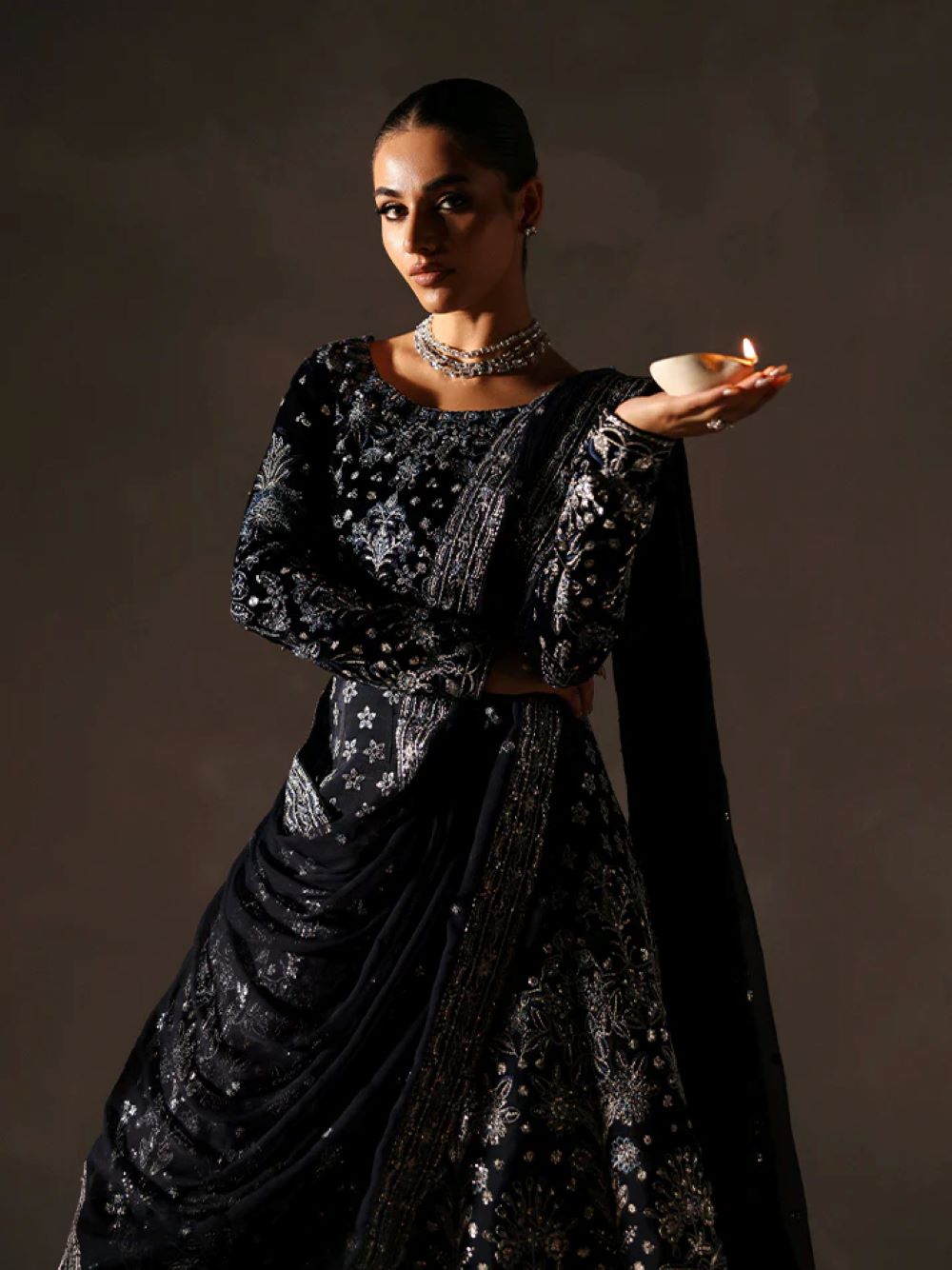 • Embroidered and sequined chiffon dupatta