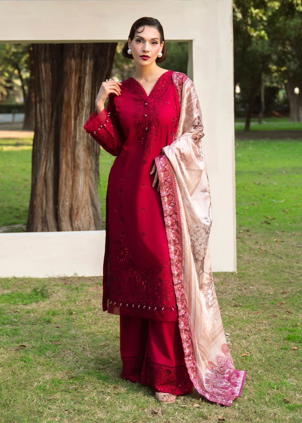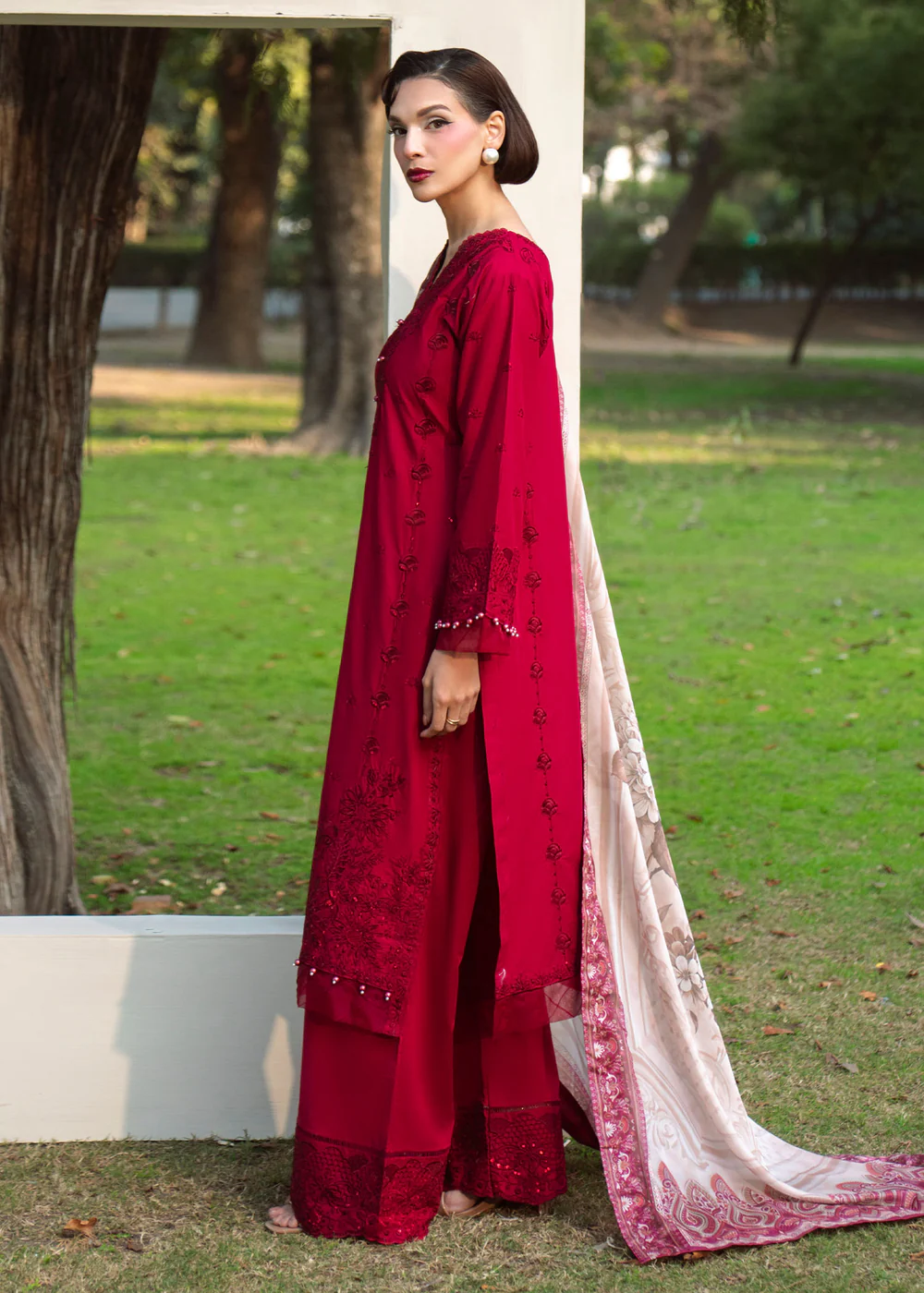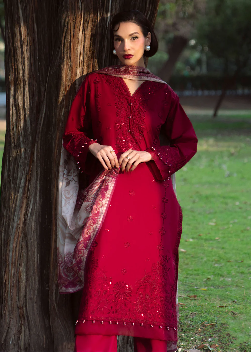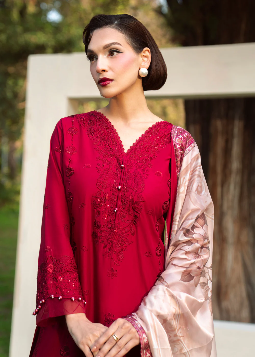 Blush tones bloom with intricate floral compositions and scalloped detailing. A romantic lawn design complemented by a beautifully finished dupatta.