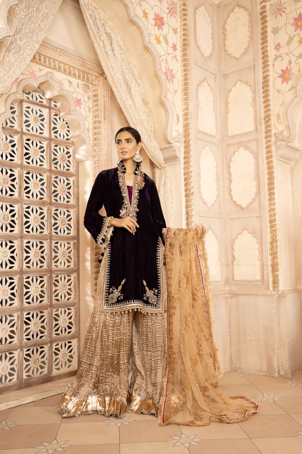- Dupatta (Embellished with Sequins, Gotta )