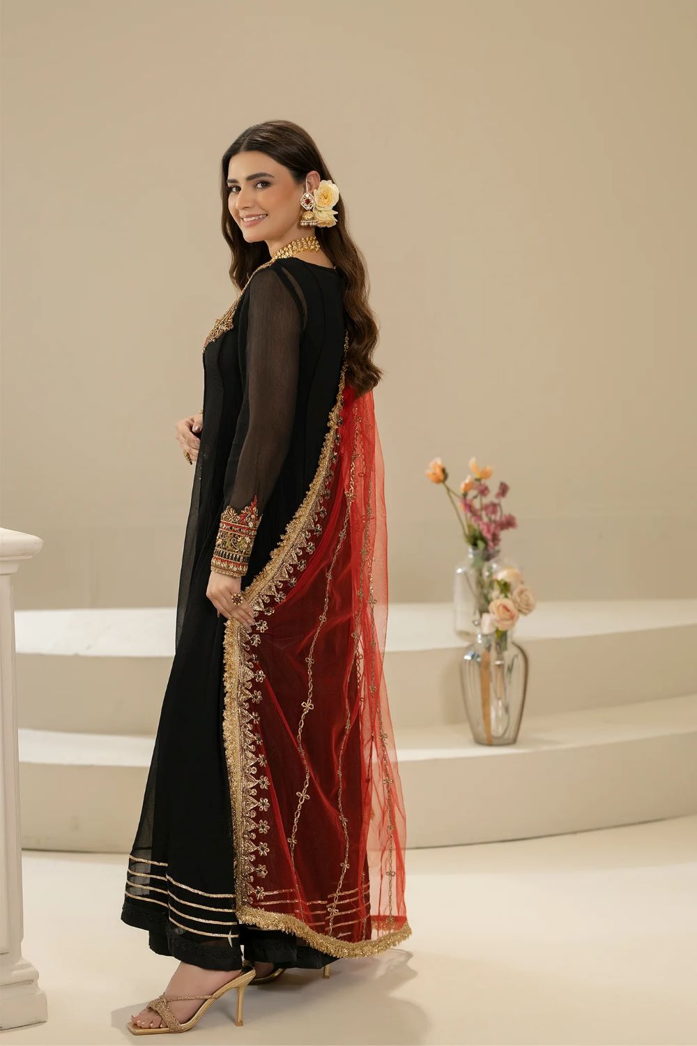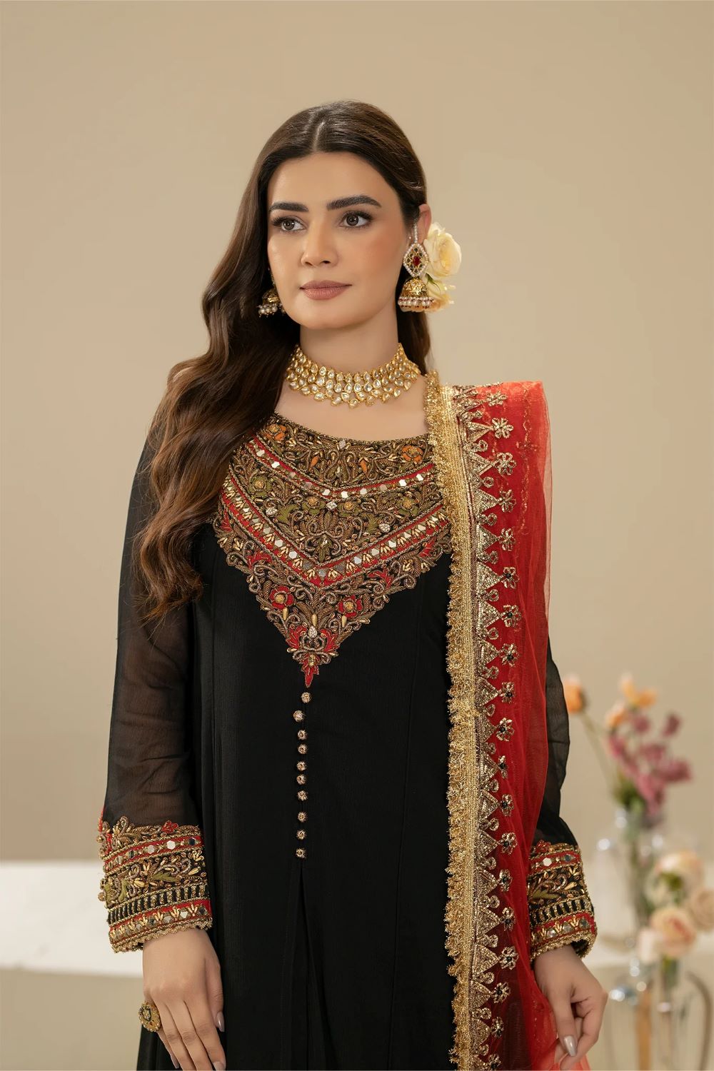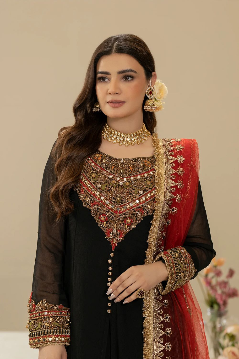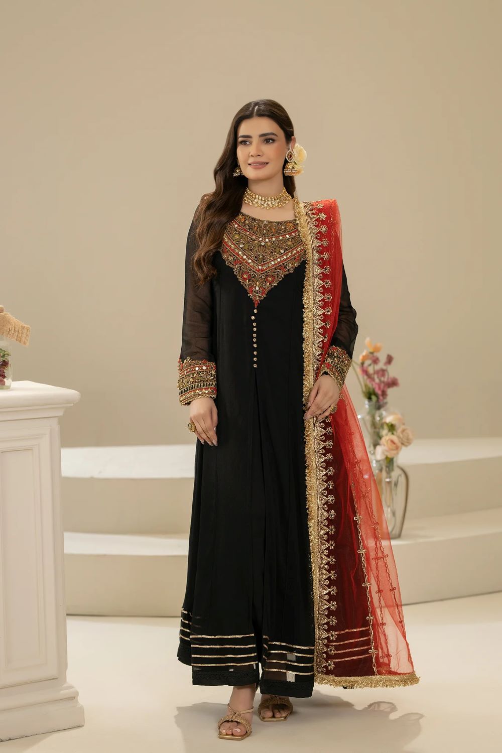 - Dupatta: Pure Net (Embroidered with Gota, Embellishments and Pearl)