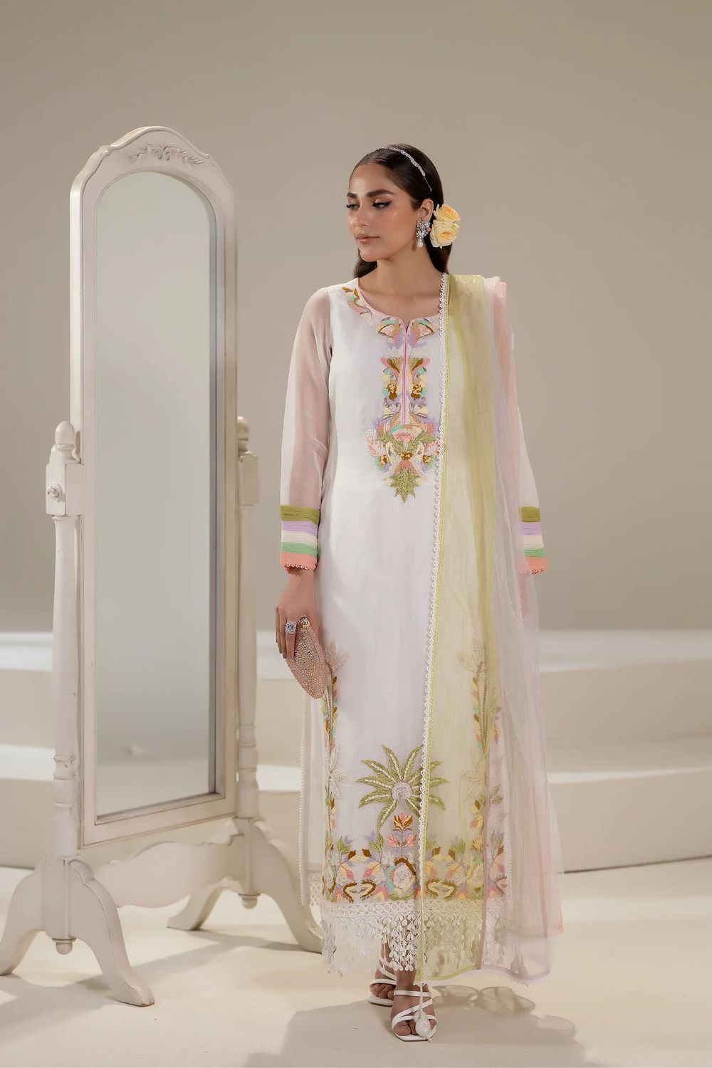 KHUDA BAKSH | 3pc suit White Pure Organza -M-108 | Ready to wear