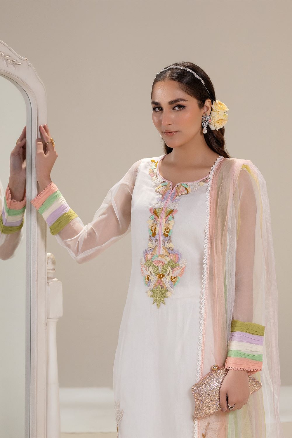 • Shirt: Pure Organza (Embroidered with Anchor, Resham)