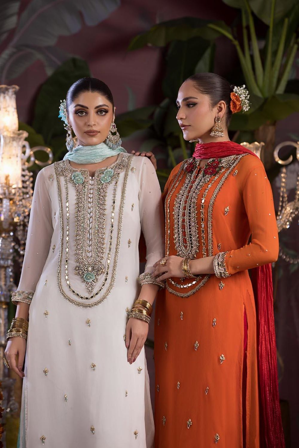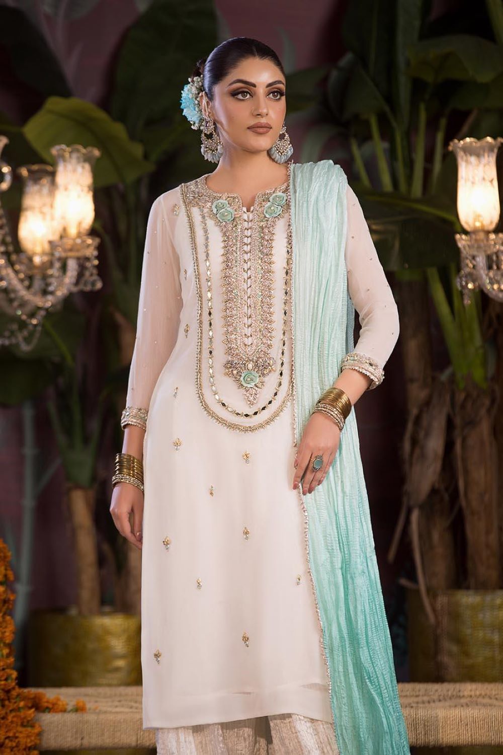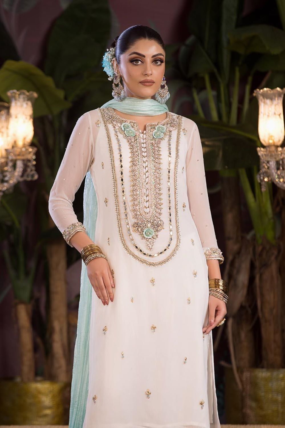 • Shirt: Crinkle Chiffon (Hand Embroidered with Kora, Dabka and Mirror Work)