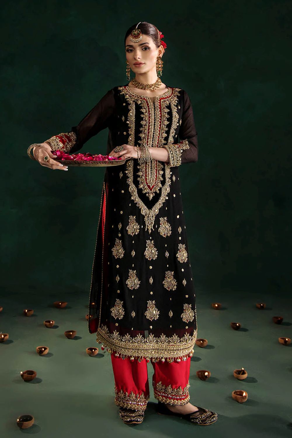 • Shirt: Crinkle Chiffon with Kora, Dabka, and Zardozi work (Hand-embroidered)