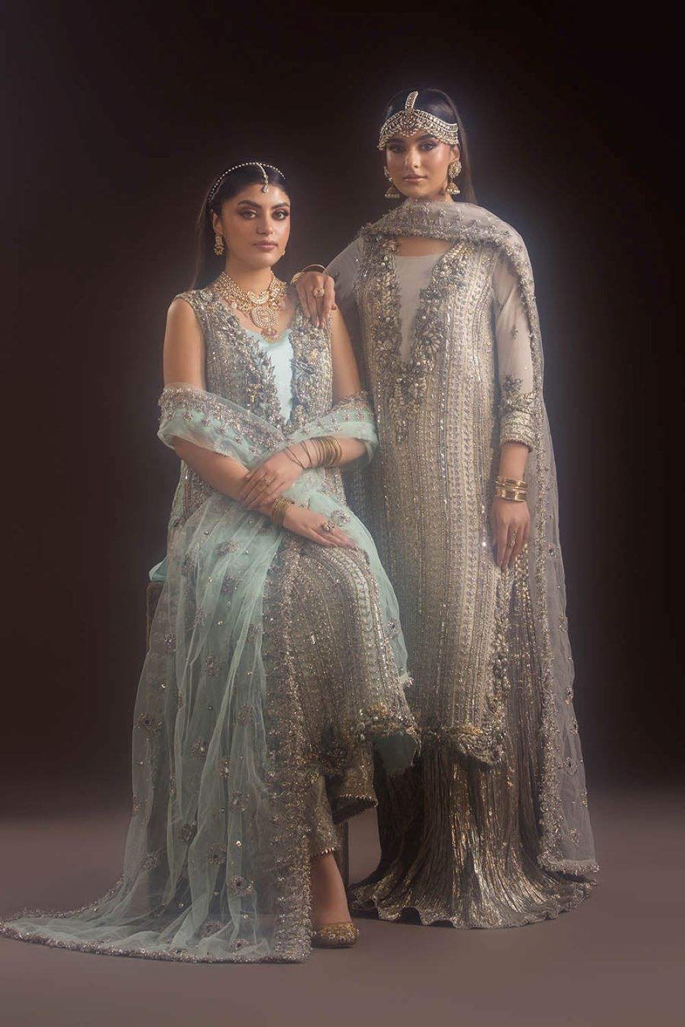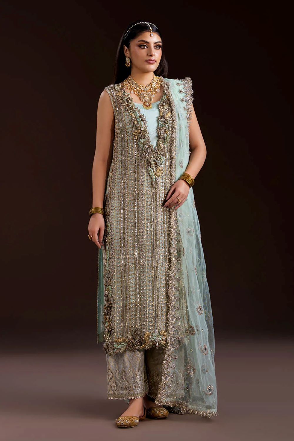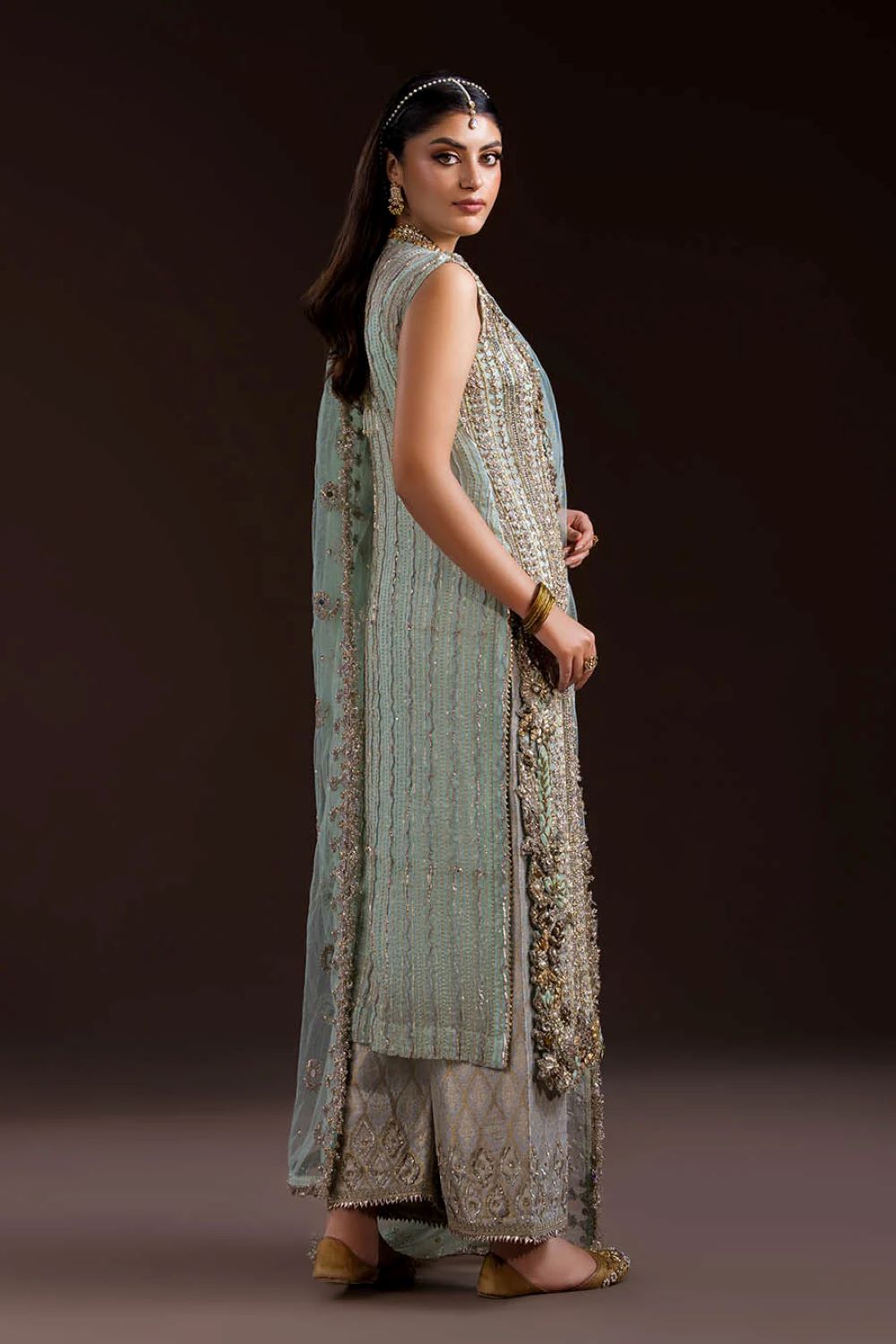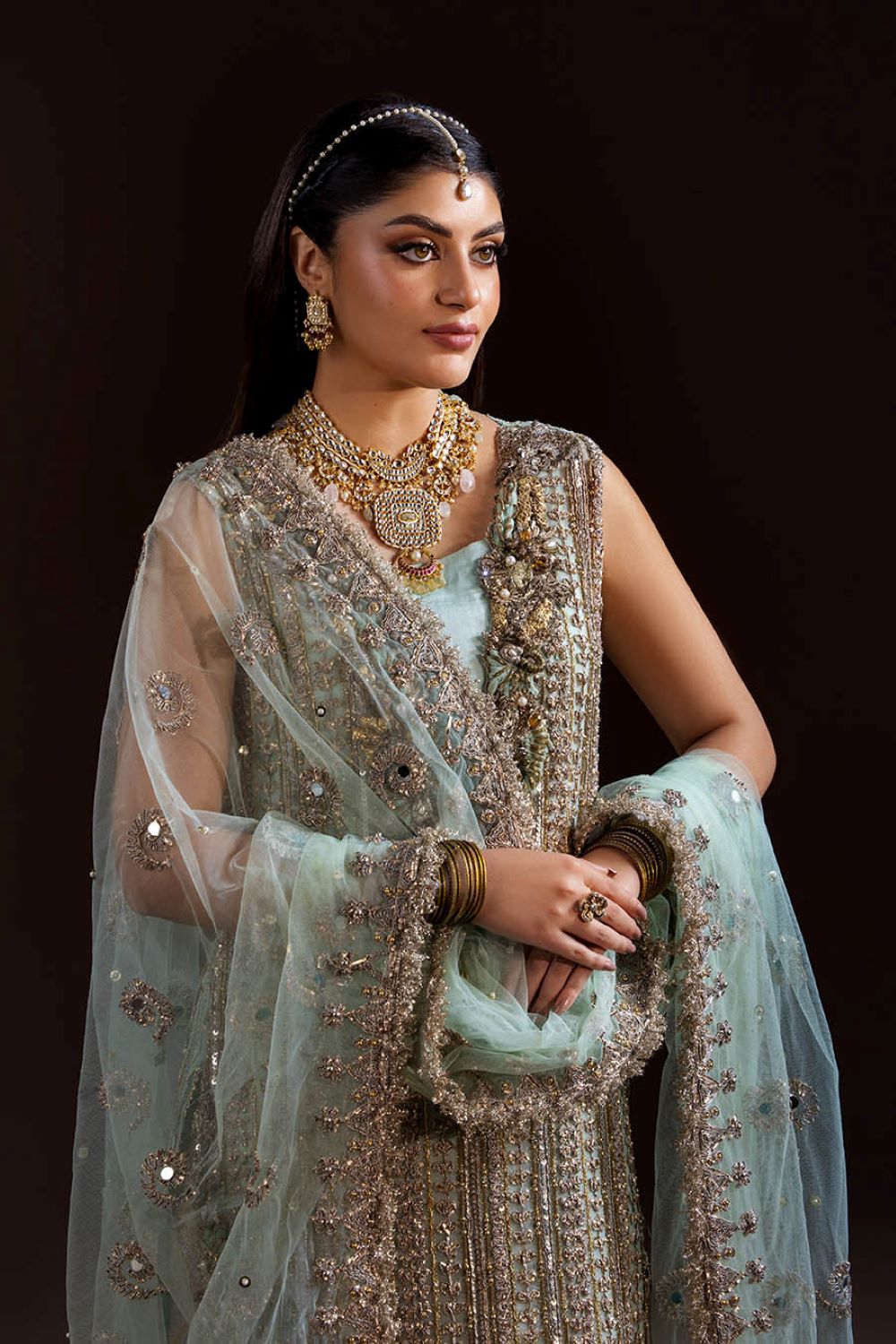 Shirt: Crinkle Chiffon (hand-embroidered with Gotta, Kora, Dabka, sequins, pearls & stones)