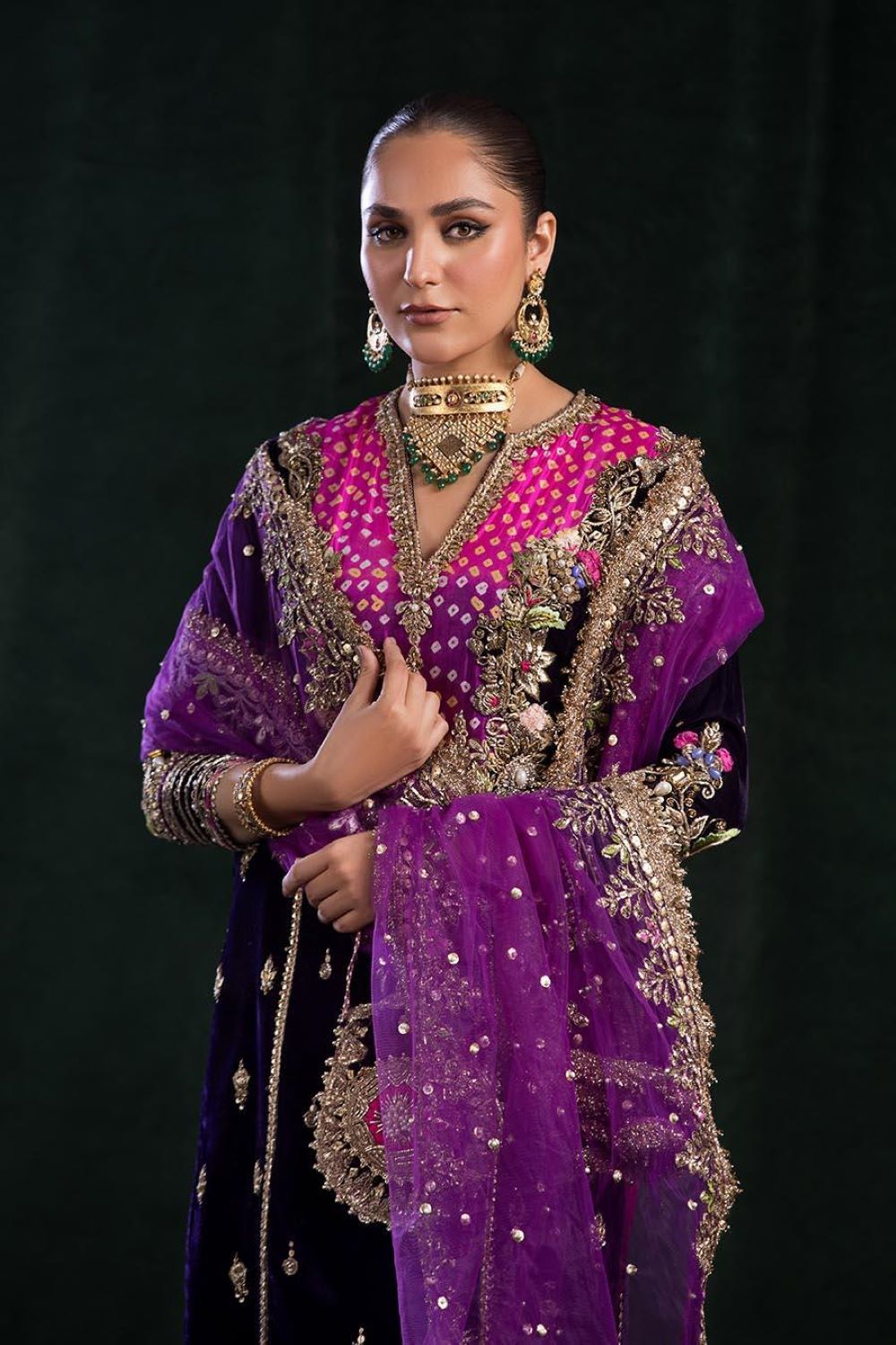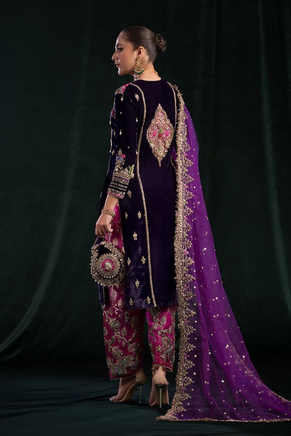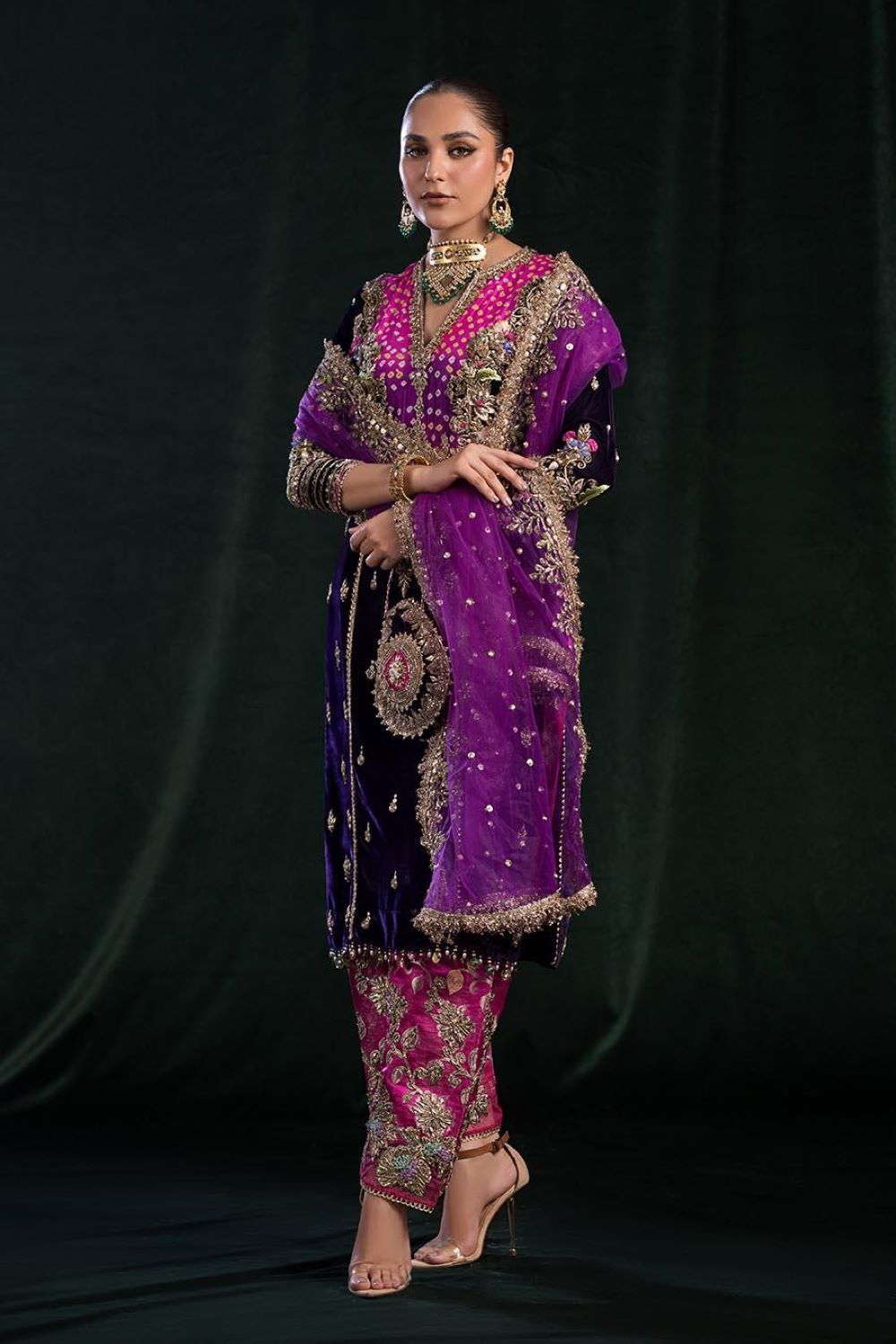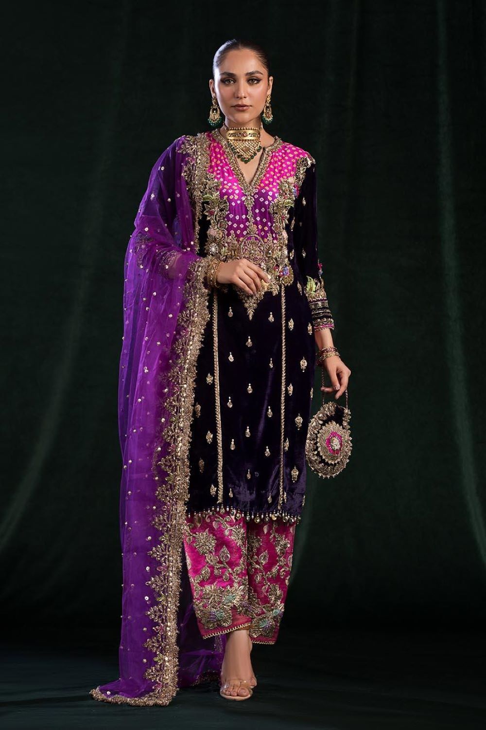 - Shirt: Velvet + Pure Raw Silk Chunnari (Hand Embroidered with Kora, Dabka and Gotta)