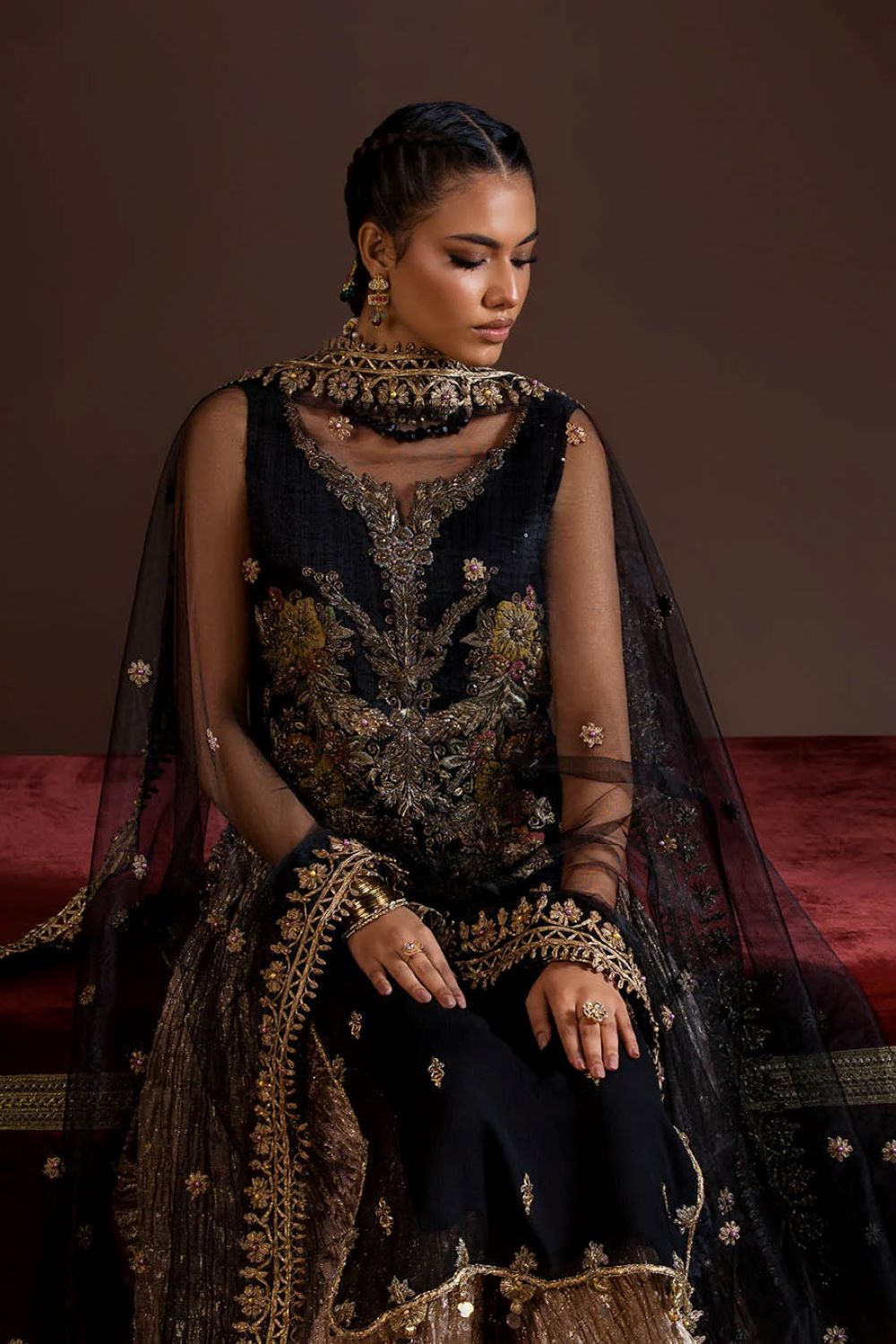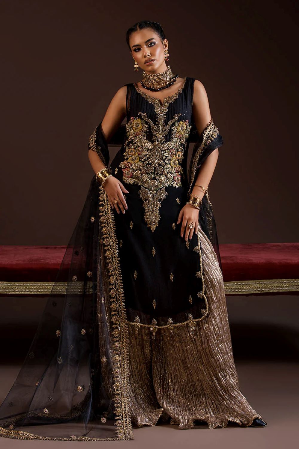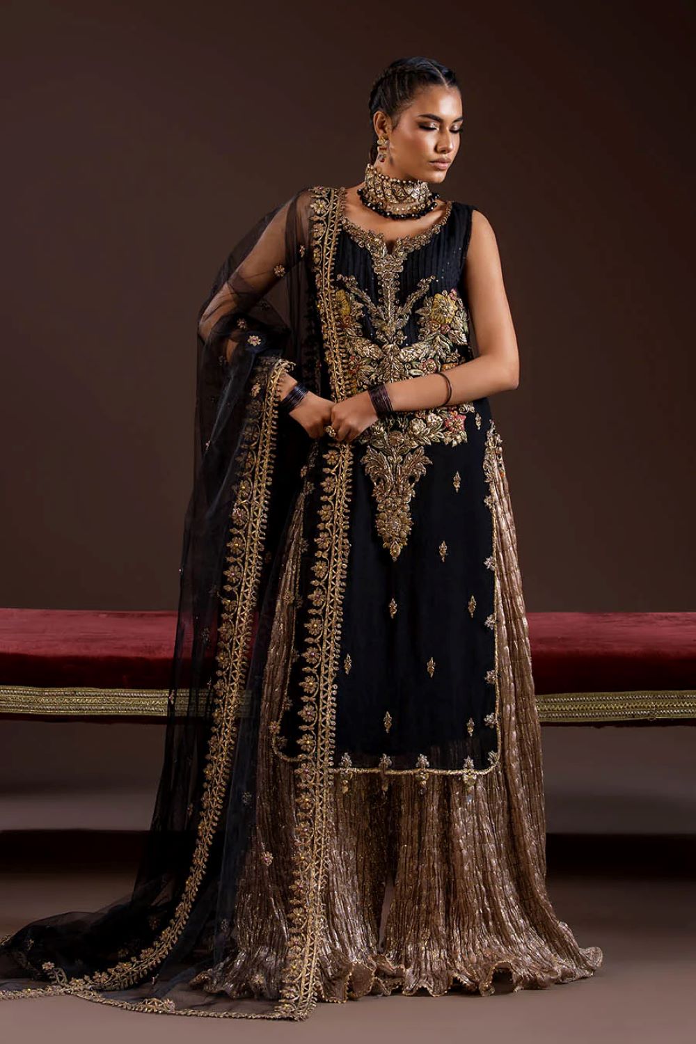 - Shirt: Crinkle Chiffon (kora, dabka, zardozi 3d work)