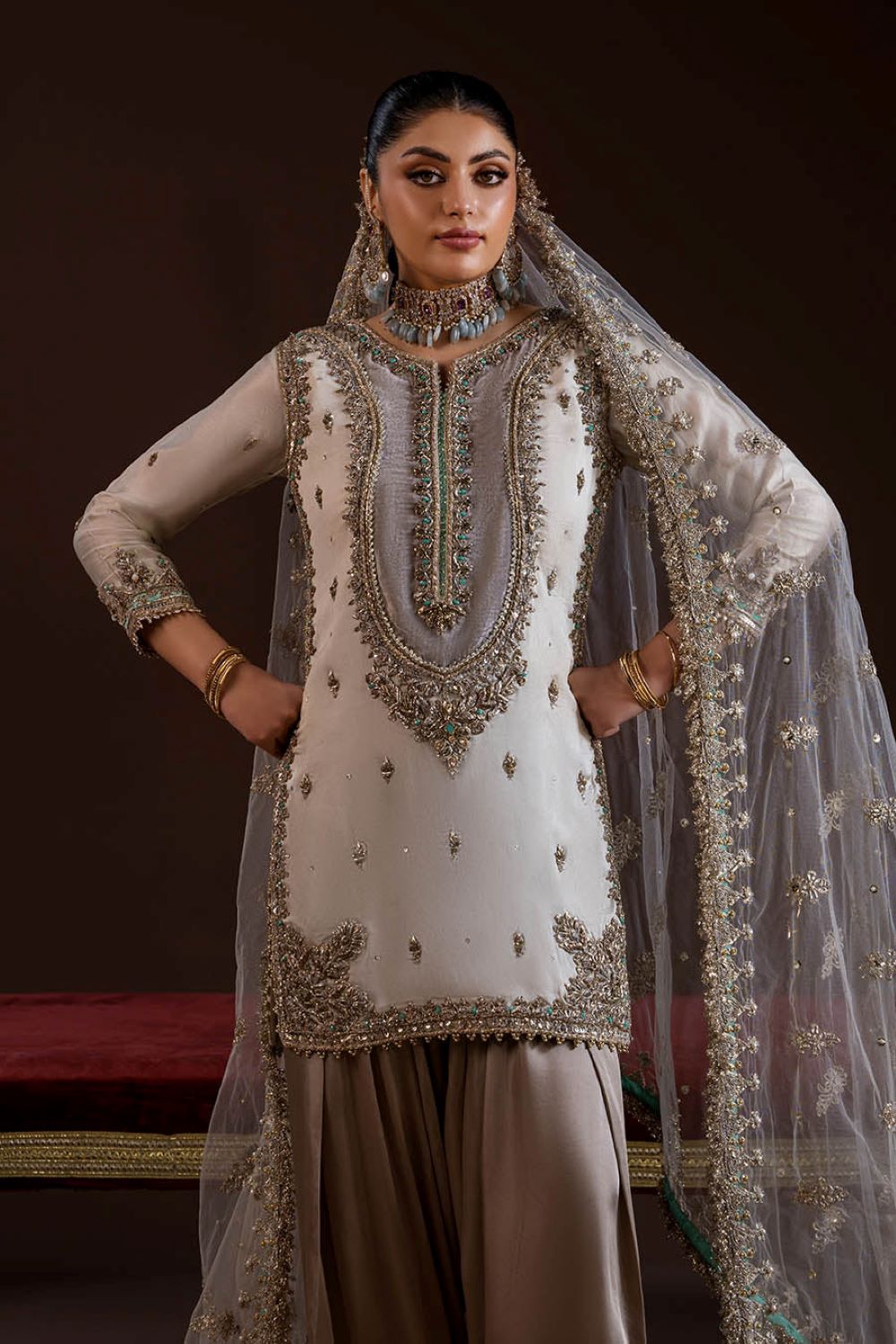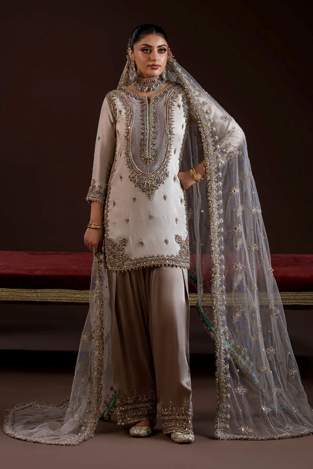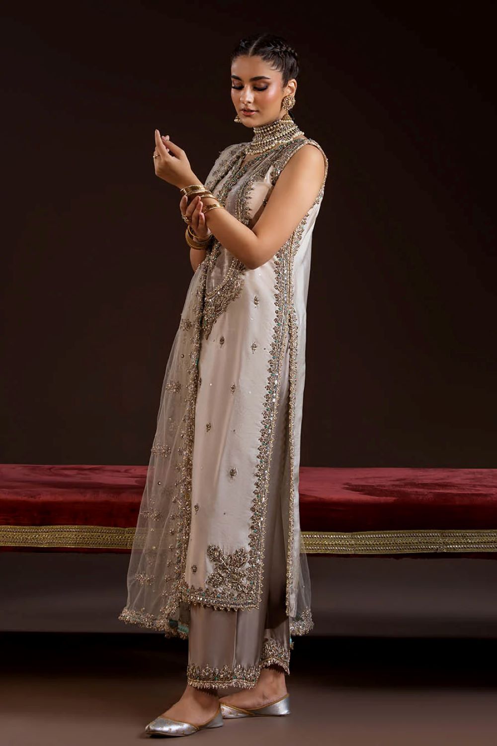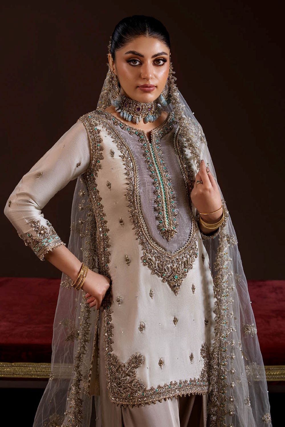 - Shirt: Pure glass silk (kora dabka zardozi work)
