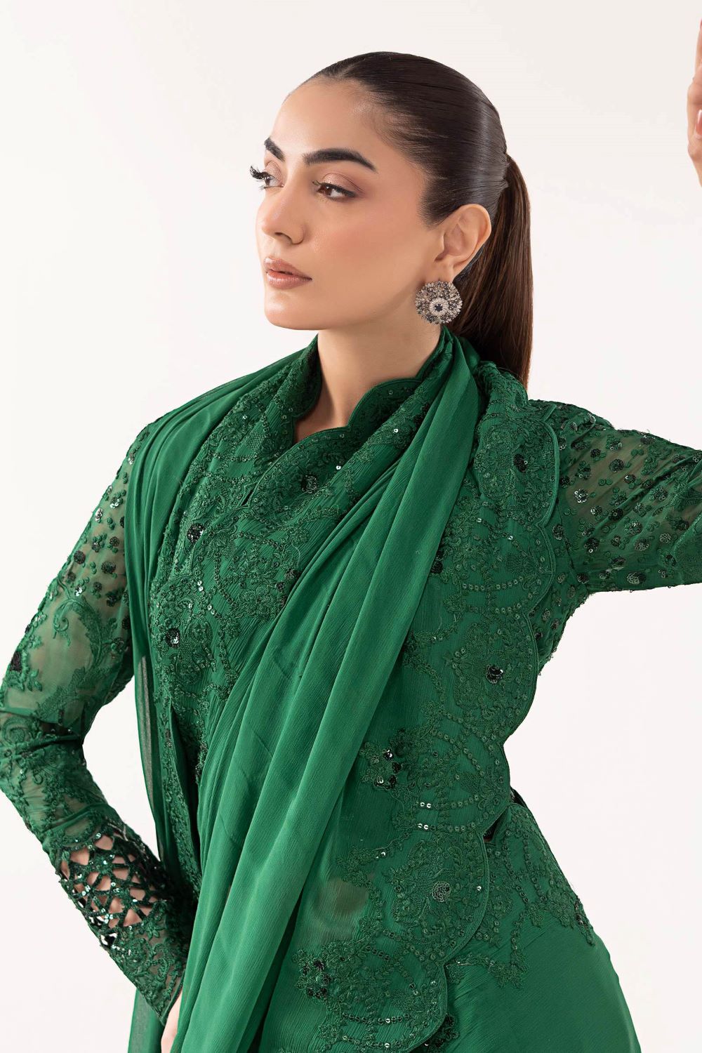 Embroidered Fitted Sleeves With Scalloped Finish
