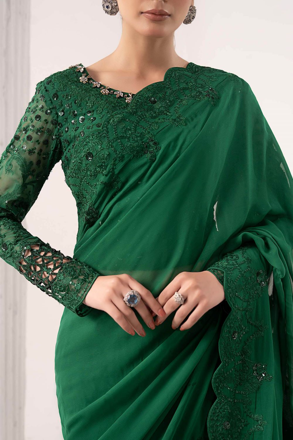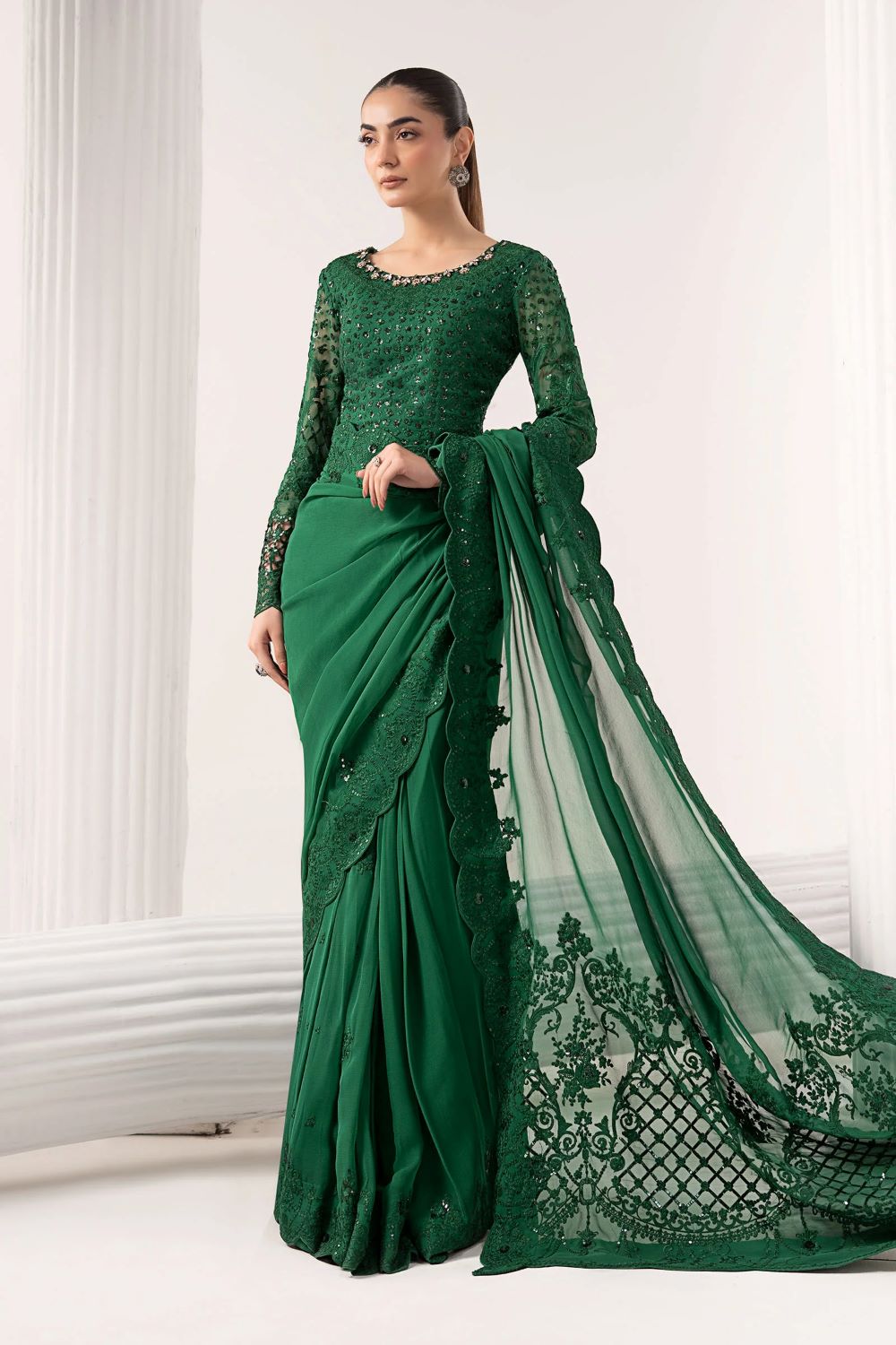 Maria.B | Embroidered Chiffon Saree | SF-EF26-73 | Ready to wear