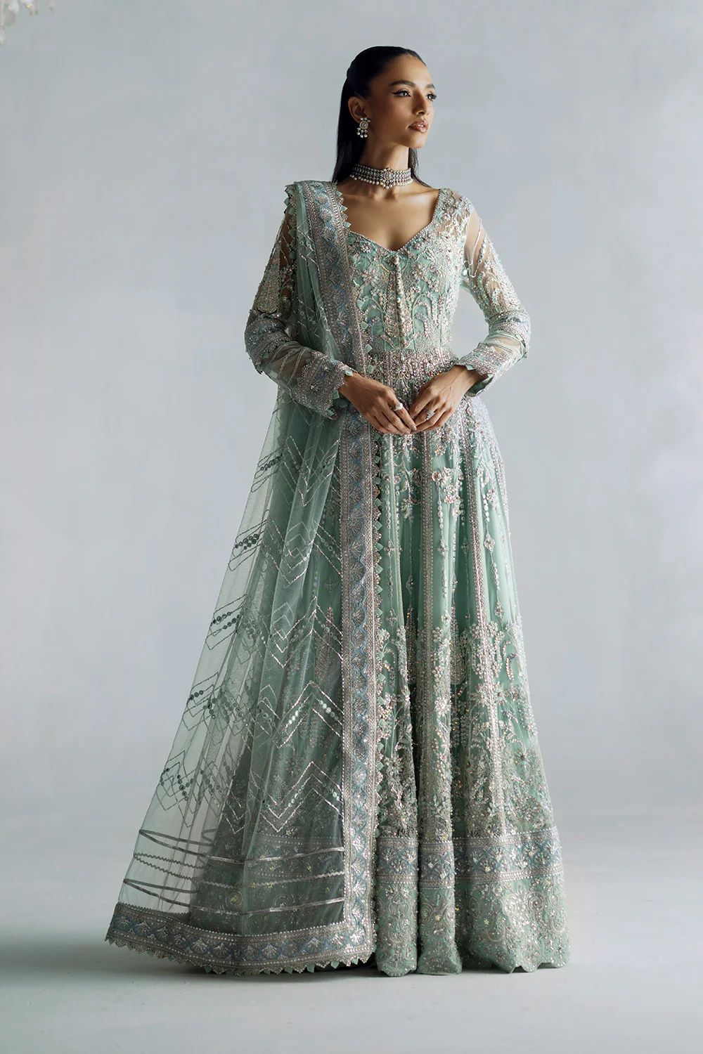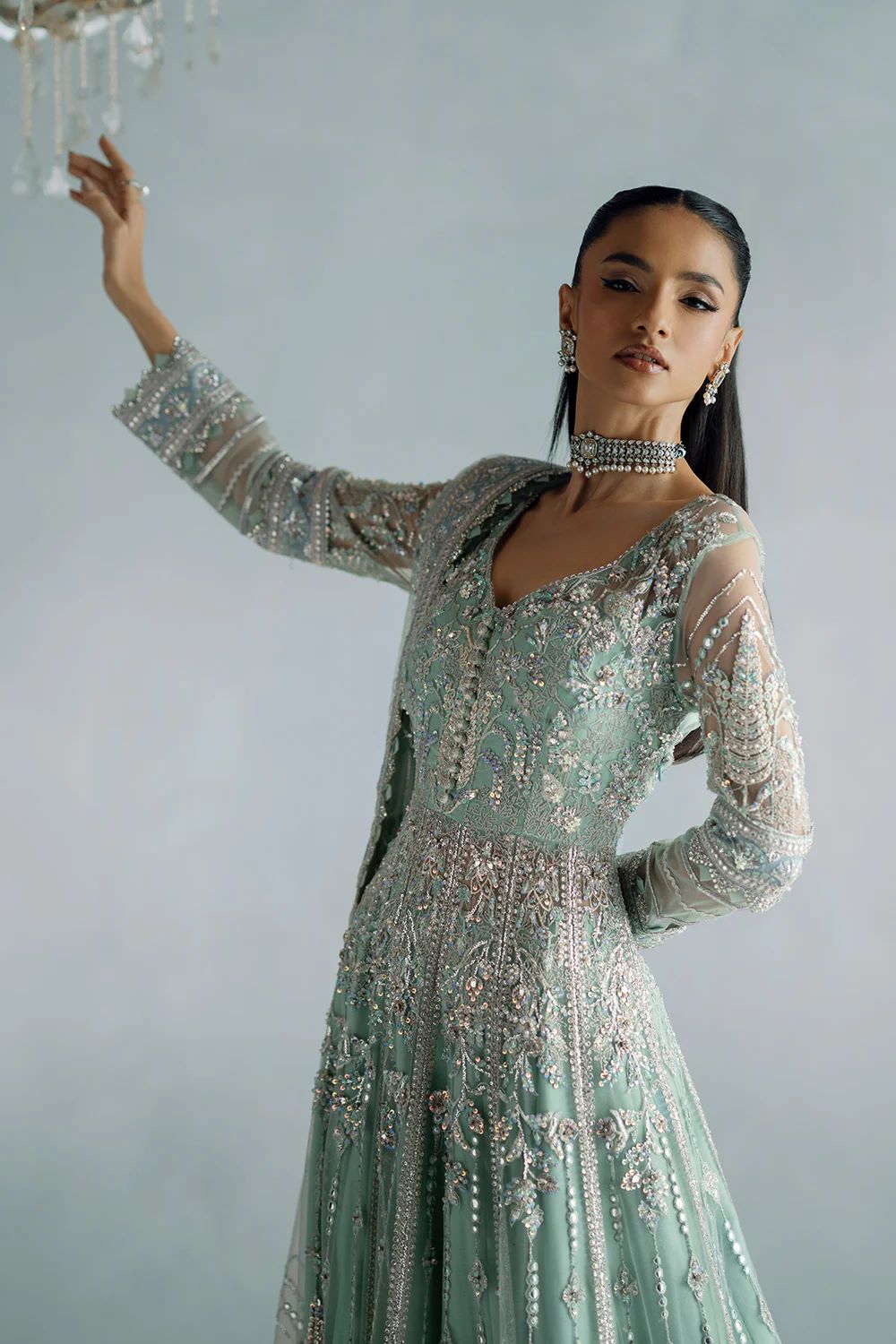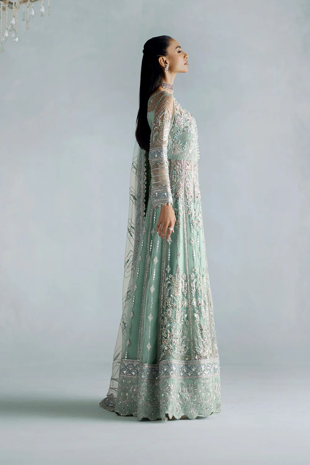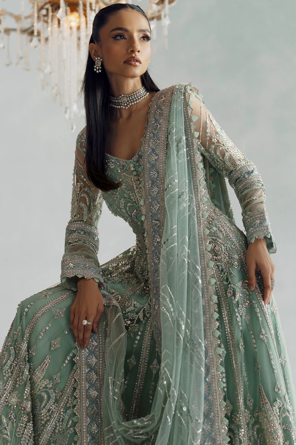 Indulge in timeless elegance with this exquisitely crafted 3-piece multi-hued Lehenga ensemble, designed to elevate your festive and wedding wardrobe. The Bareeze net shirt features a fully embroidered front and back, enriched with addaa work on the front bodice and a V-neckline adorned with embellished edging. Delicate yet regal, the full-length embroidered net sleeves are finished with heavy borders and sequins addaa detailing for a luxurious touch. The grip Lehenga, enhanced with multiple densely embroidered panels, offers breathtaking volume, complete with dual borders at the hem and attached can-can for a grand silhouette. A separate embellished belt hand-worked with sequins and stones adds definition and sparkle to the look. Completing the set is a matching Bareeze net dupatta, featuring an all-over embroidered spray for a soft, ethereal finish.