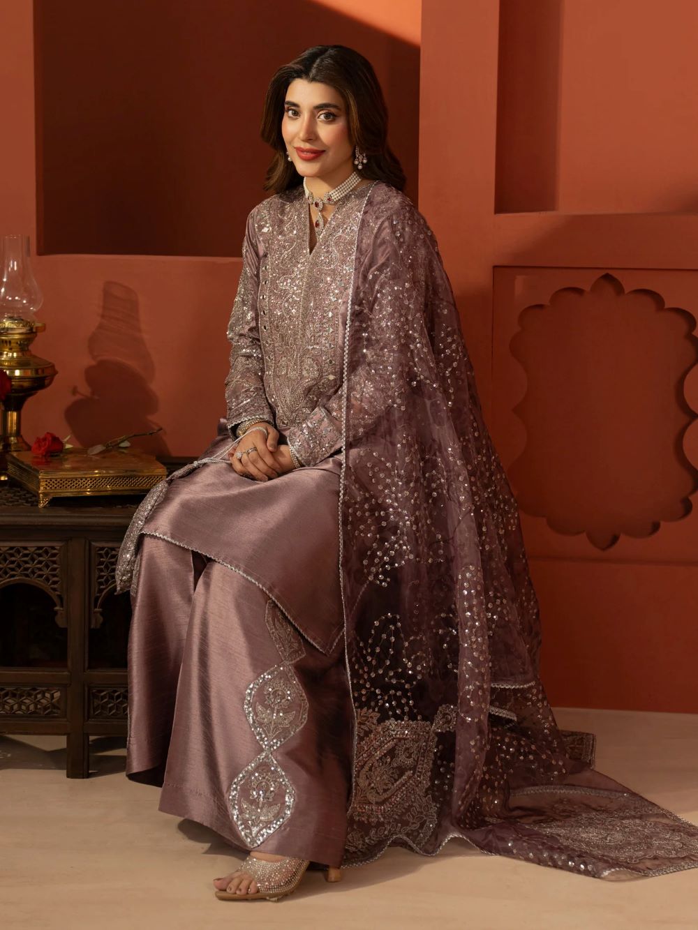 DYED INDIAN RAW SILK EMBROIDERED TROUSER