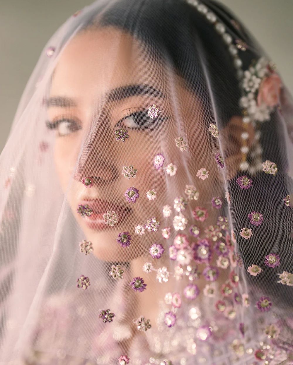 Embroidered and sequinned net dupatta