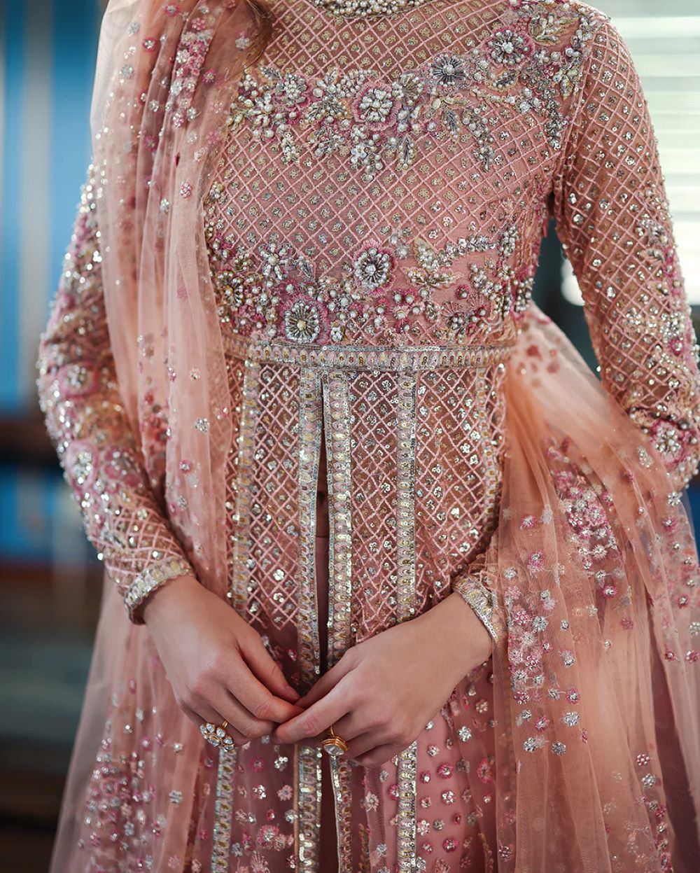 • Embroidered, sequined tilla lace for daman