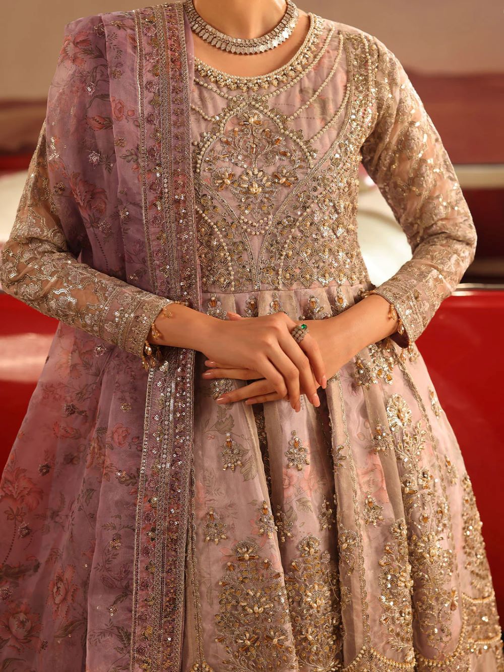 - Beautiful ORGANZA fabric with elegant adda work,embroidery,tilla and sequence