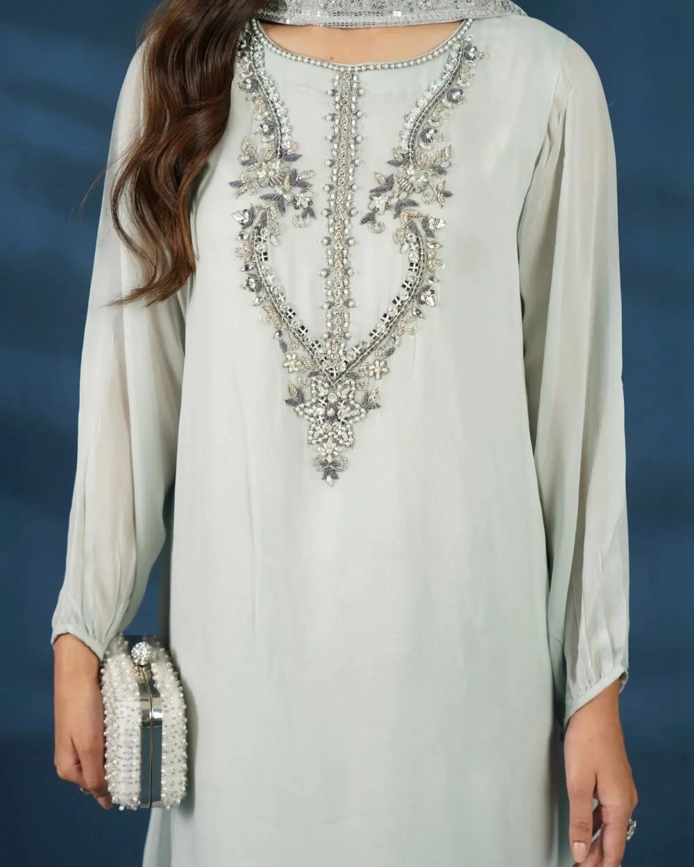 • Frock: Chiffon, Tilla Embroidered