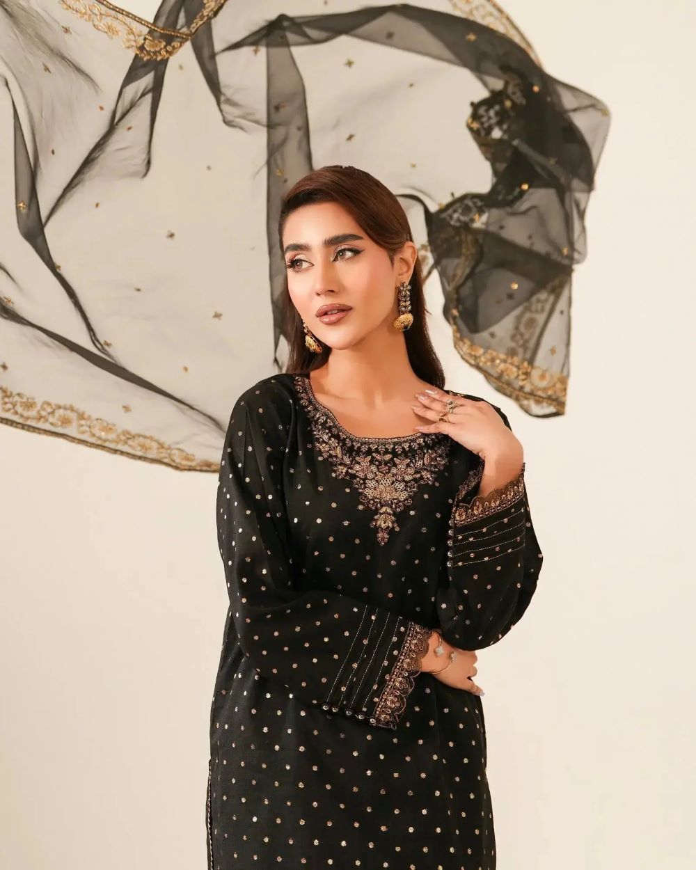 Effortless Style for the Modern Charm with the Chambray Bindi 3-Piece Outfit. Designed for the modern individual, ensembles blend classic tailoring with contemporary accents, offering a perfect balance of style with handwork detailings and border lace finishings paired with bindi chambray shalwar and organza dupatta. Whether you’re heading to an official lunch or a formal evening gathering.