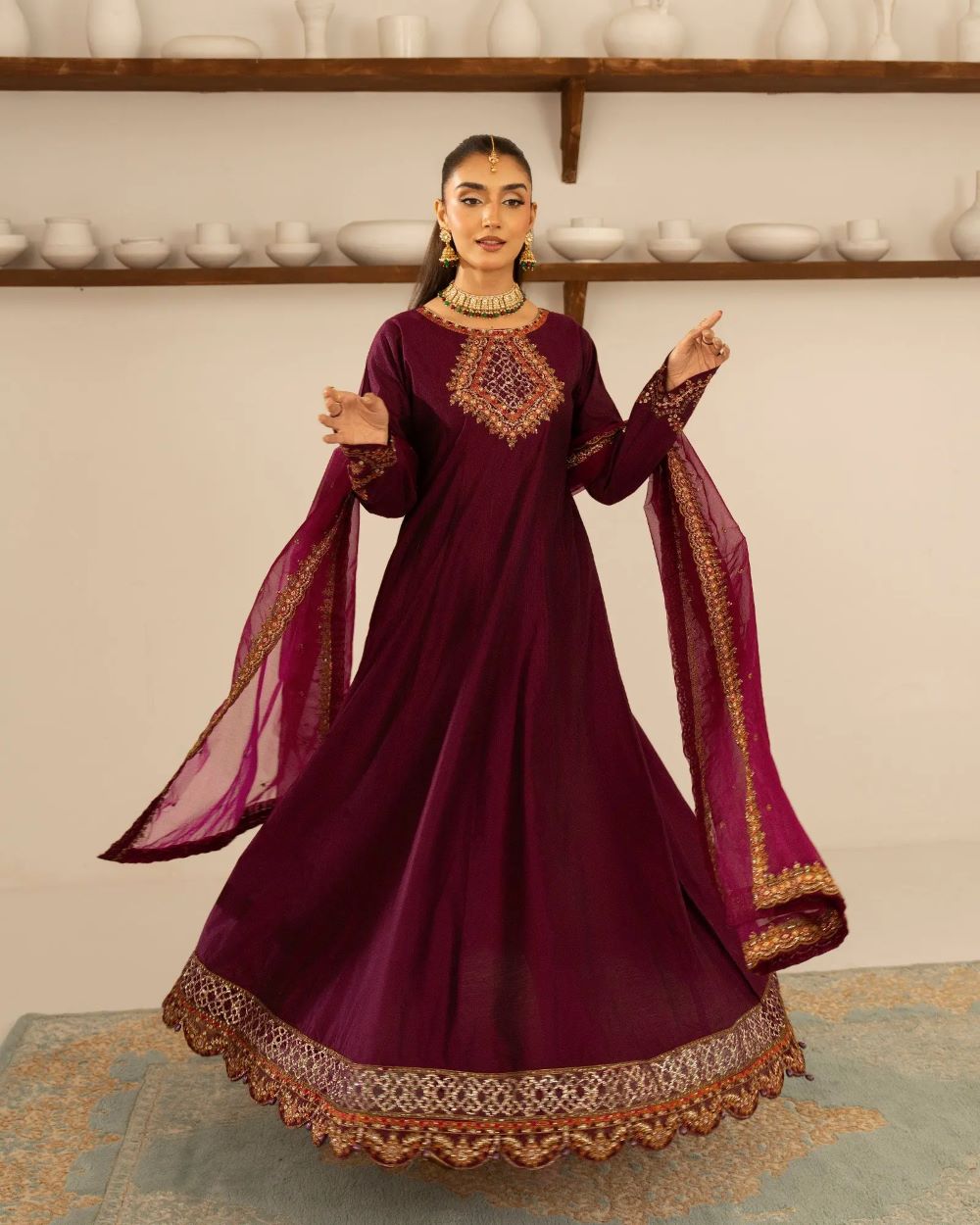 Includes: Maxi with trousers and dupatta