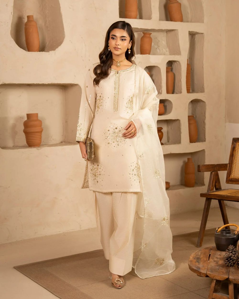 ShaPosh | Plain Paper Katan 3PC | 4126-SJ-P.P.KTN-O.WHT | Ready to wear