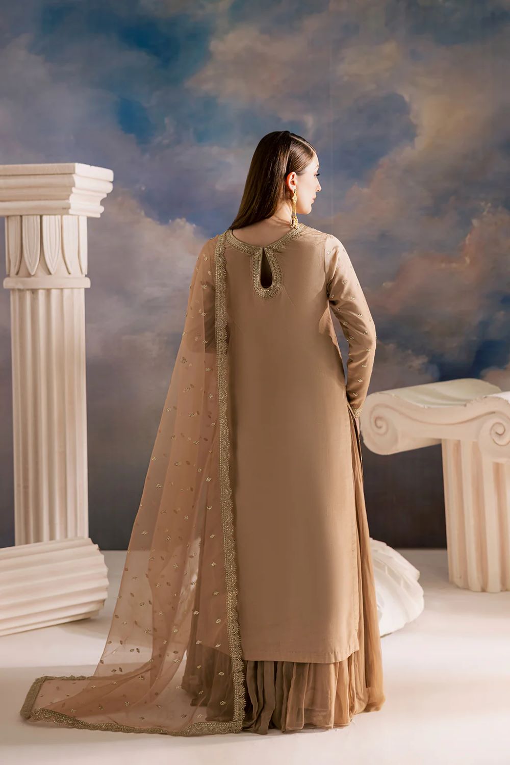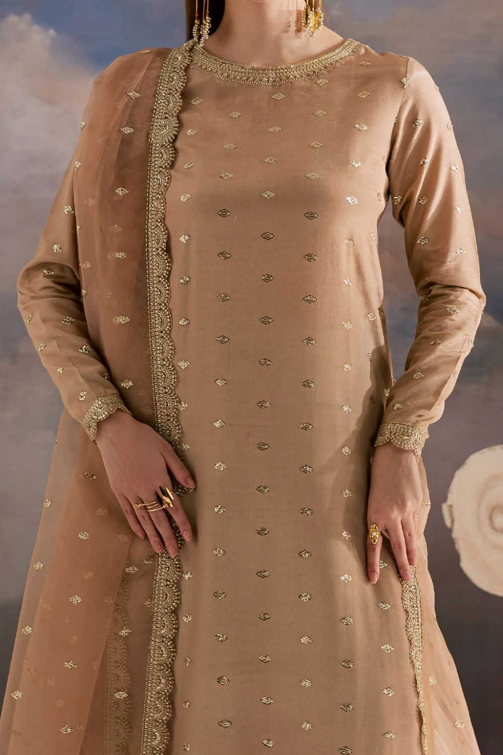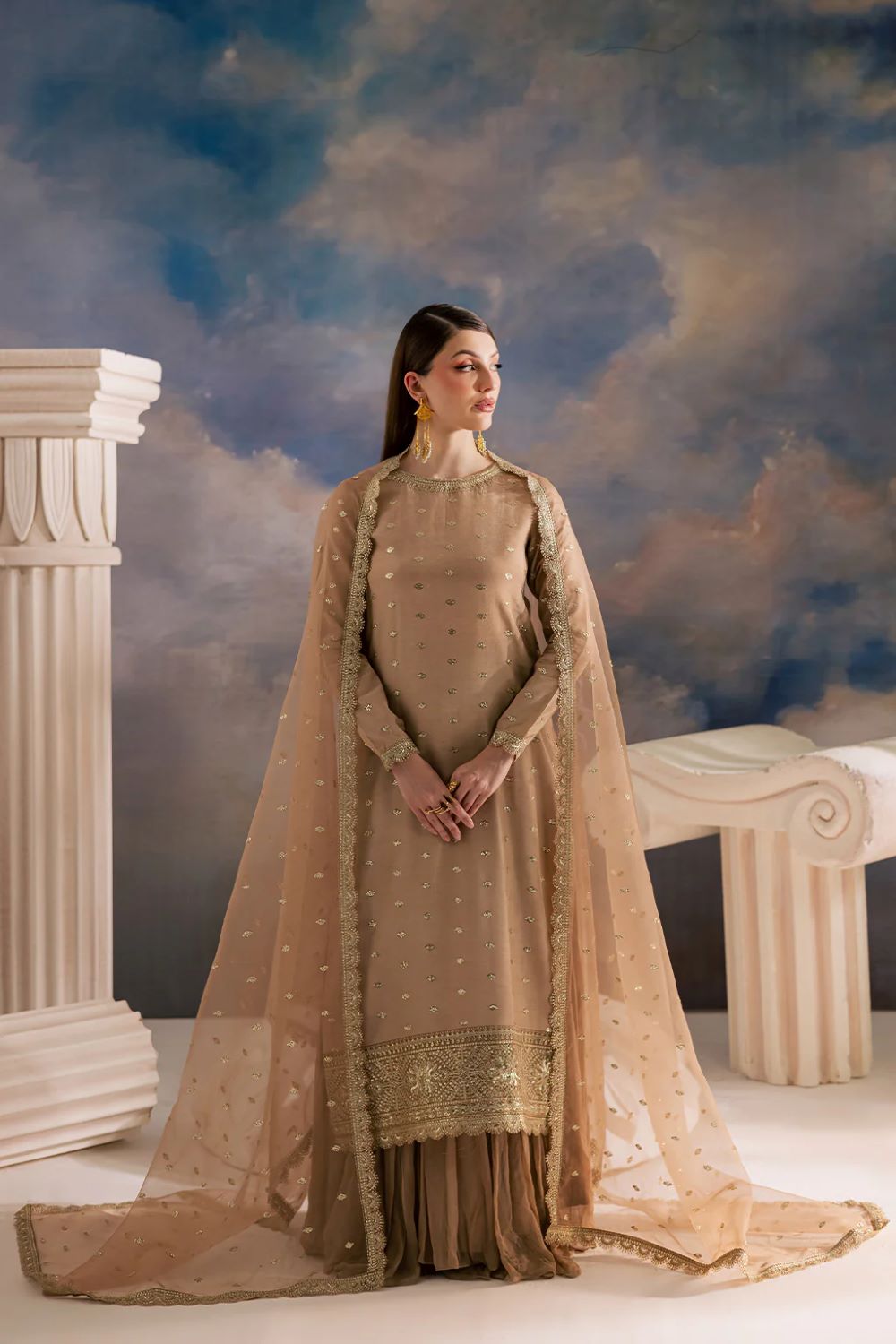 Vanya | 3 pc Embroidered silk shirt paired with crushed chiffon Sharara FF-68 | Ready to wear