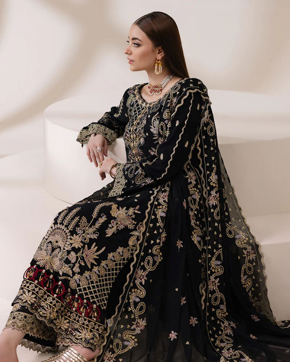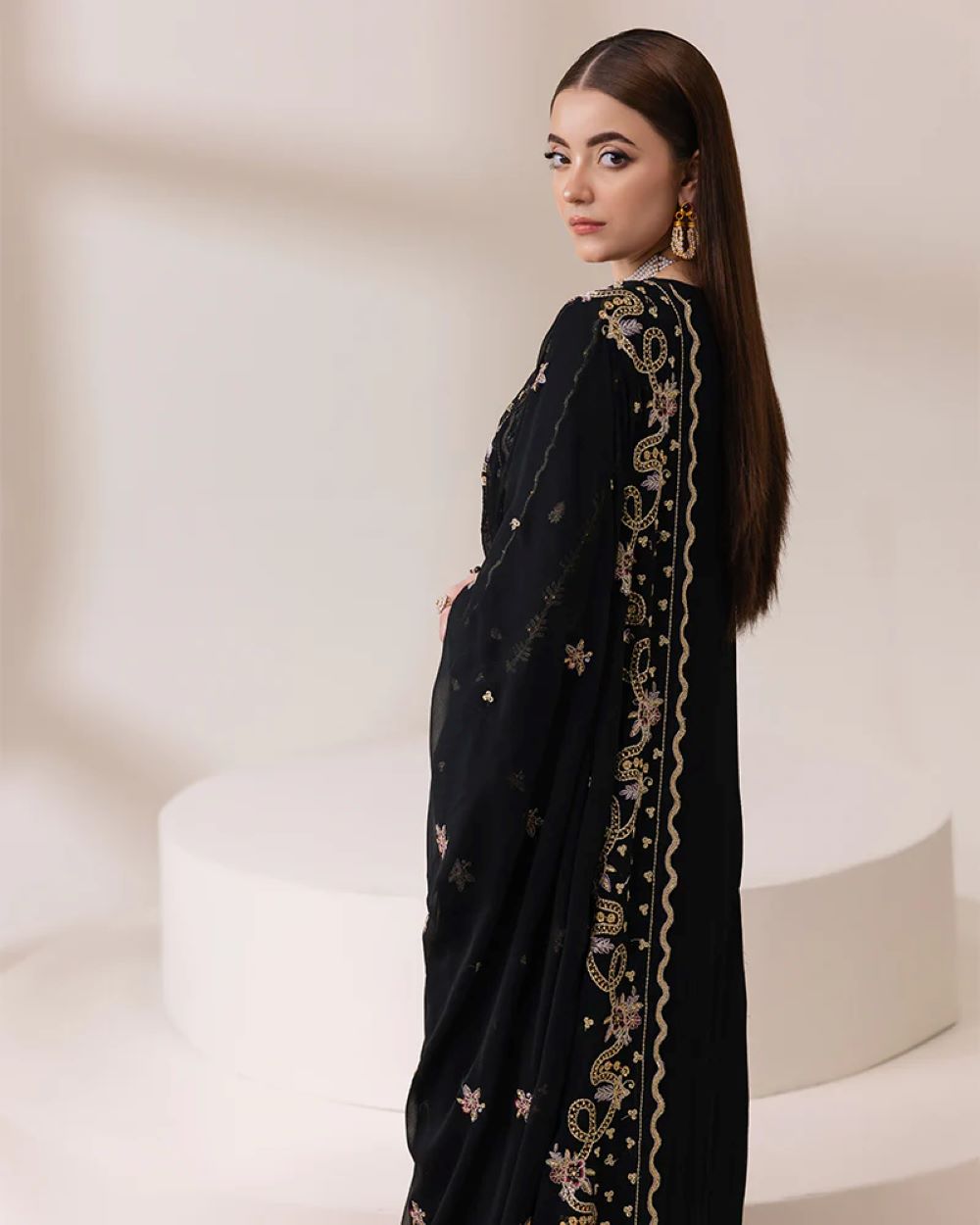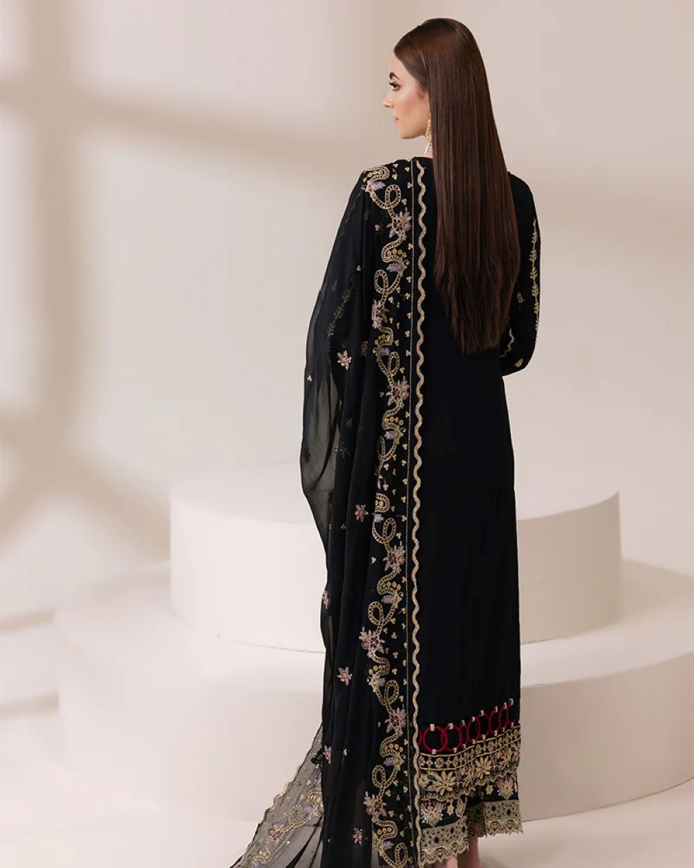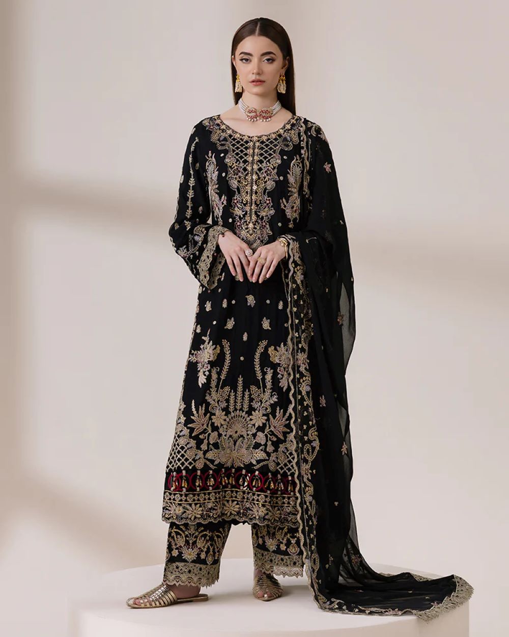 Dupatta: Stunning chiffon dupatta, featuring sequin tilla thread and delicate lace detailing