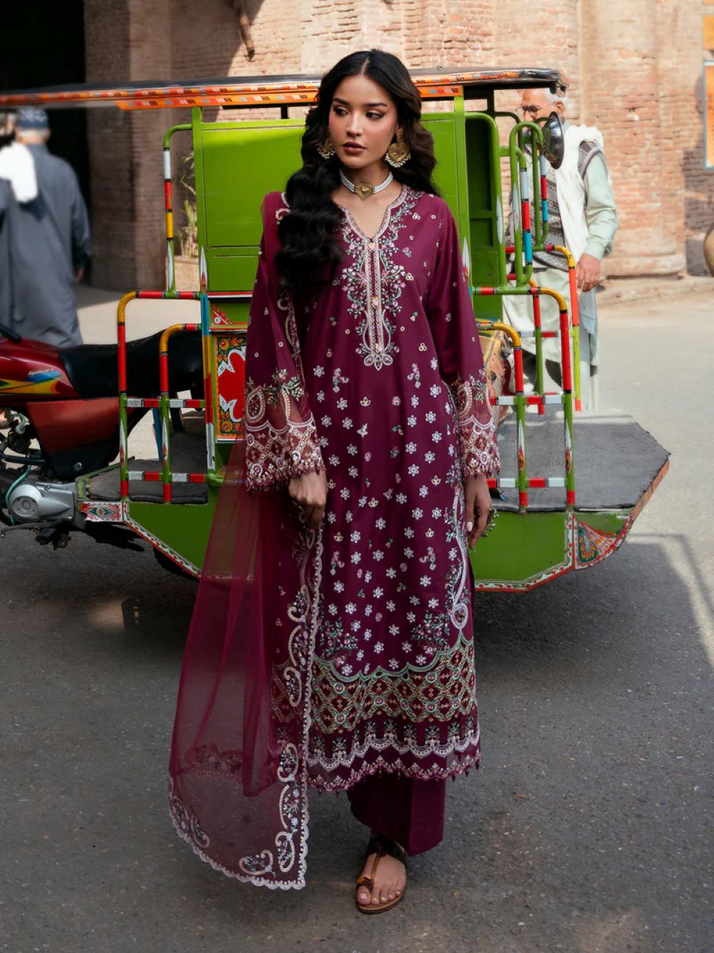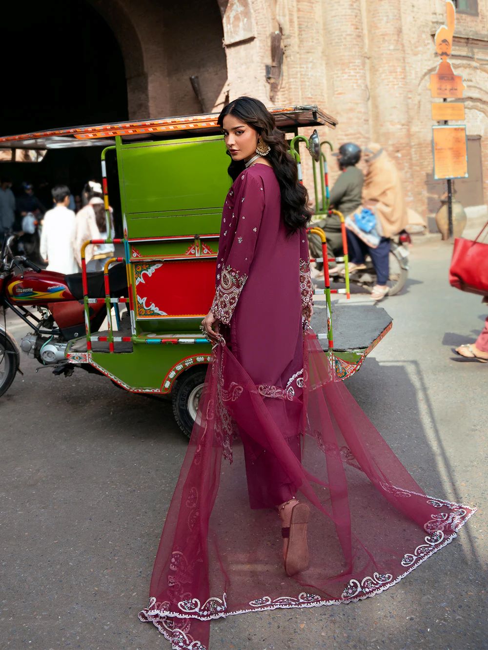 net dupatta adorned with beautiful embroidery and appliqué borders,