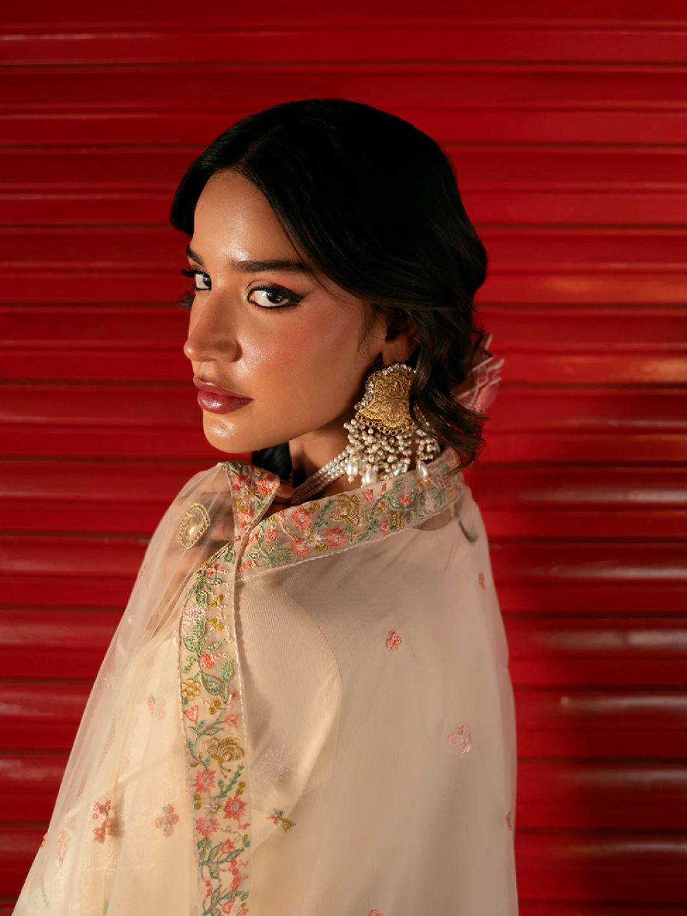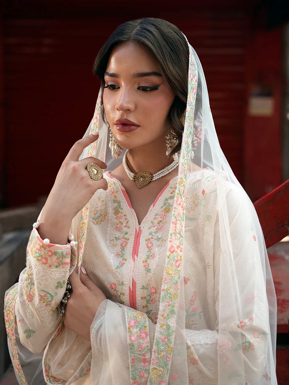 Premium cotton chikankari shirt featuring intricate embroidery tassels and scalloped borders