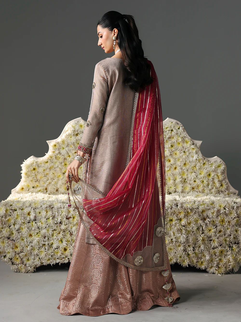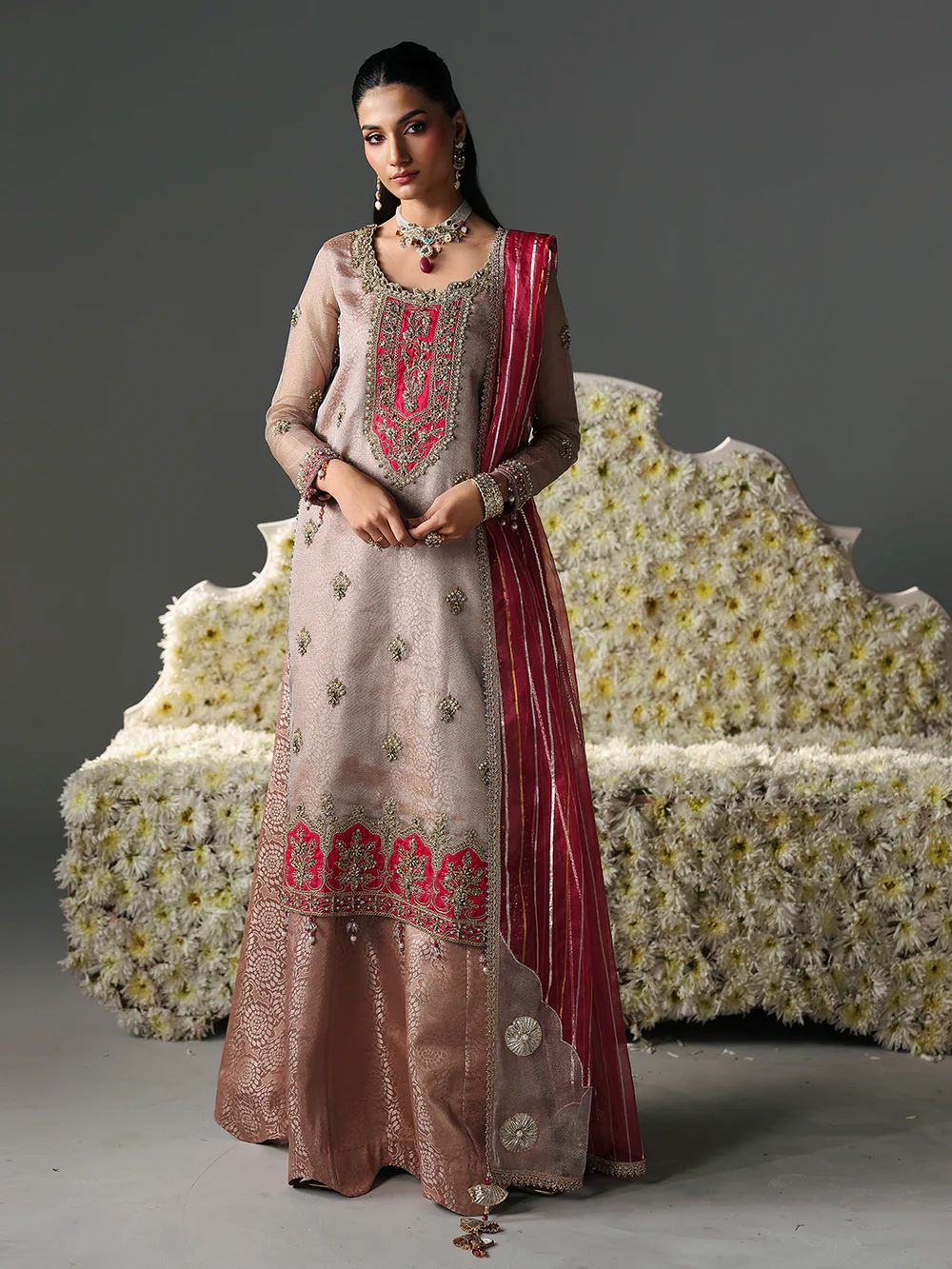 Trouser:Stylish jamawar panel shararah that adds an extra touch of flair