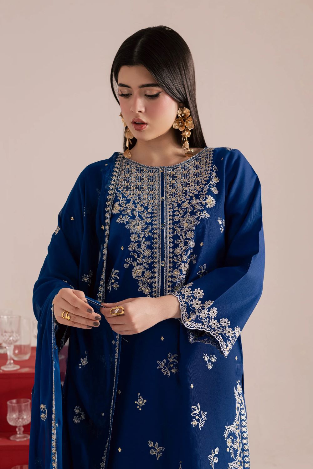 Batik | Blue Mehmal 3Pc – Embroidered Khaddar Dress | Ready to wear